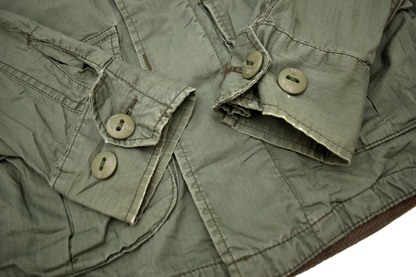 カーキグリーン 外ポケット四個 首元・後ろ裾上刺繍あり 左袖別布あり ヴィンテージウォッシュ加工 フルジップアップ OFFICER DELTA SHIRT L/S ジャケット