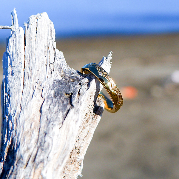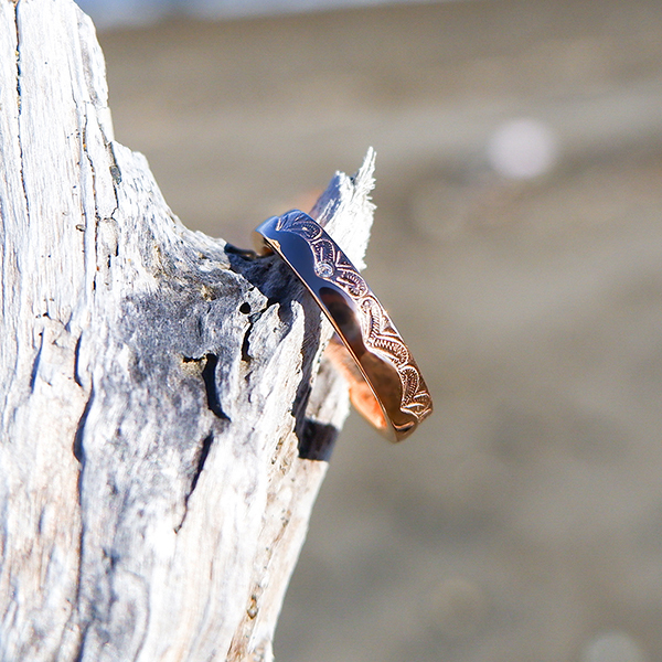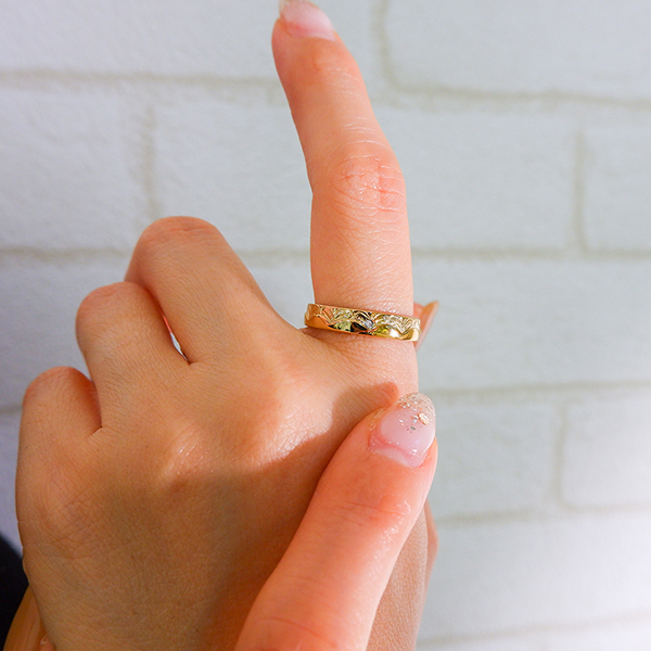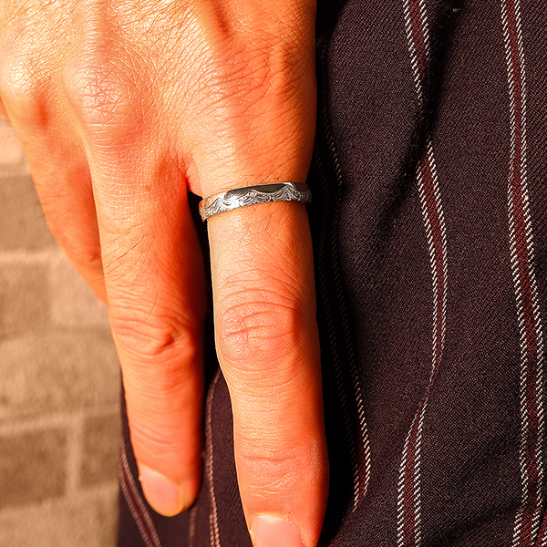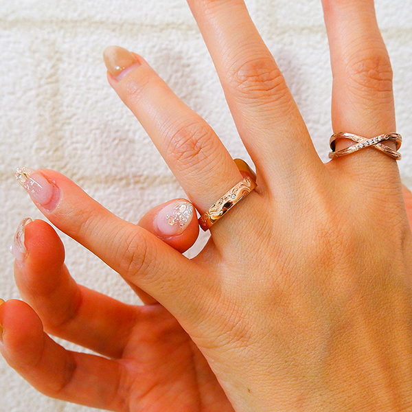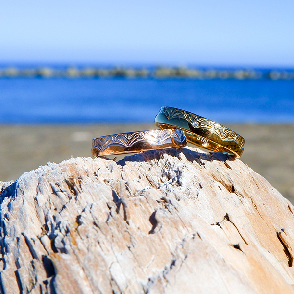 指輪の半分を波が伝うウェーブがとても美しいです♪