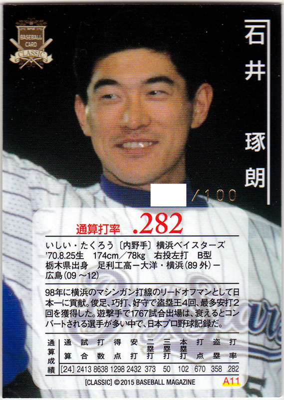 BBM 2015年 CLASSIC No.A11 100枚限定 Above Average 石井琢朗(横浜ベイスターズ) インサートカード 野球カード