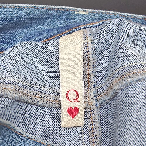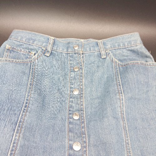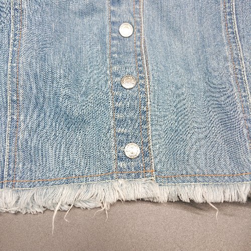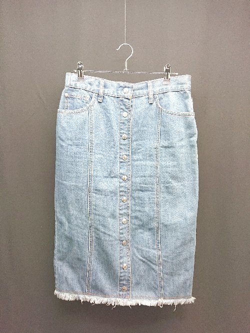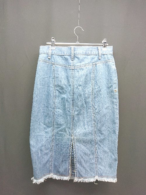 ◇ Q キュー フロントボタン スリット デニム フリンジ 切りっぱなし ロング タイト スカート サイズ2 ブルー レディース E