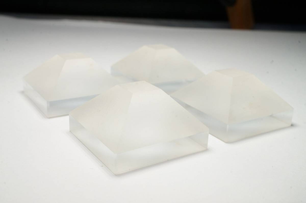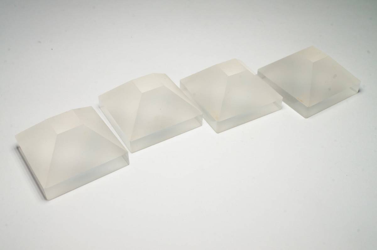 | 希少!【甲州水晶貴石細工の伝統工芸士が製作】上質人工水晶オーディオ用インシュレーター 26.0×26.0×14.1mmサイズ 4個セット | |||||||||||