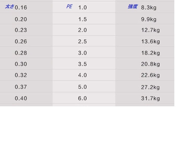 ライン強度も問題なしで・コスパに優れて、明朗・送料290円です。 素材は日本製・製造は海外です。 国内ラインと若干太さが異なると言う見解が稀にあり ご購入の際はノークレームでお願いします。 在庫は常に変動し、状況によってはメーカー違いの同じ商品を送る場合もあります。 何卒ご理解とご了承の上で落札願います。 常時在庫はありますが、複数・大口落札で急に在庫切れになった場合は 順次入荷するまで少しお待ちいただく場合があります。 こちらをクリック その他・各サイズPEラインも格安で出品中です。 ※10m毎に5色で色分けされています ライン強度は画像2枚目を参照ください。 ※ 稀に急な出張で4日前後、発送が遅れる場合があり、その際はご了承ください。 土日・祝祭日・年末年始・お盆・大型連休などは発送対応はできません。 | ||||