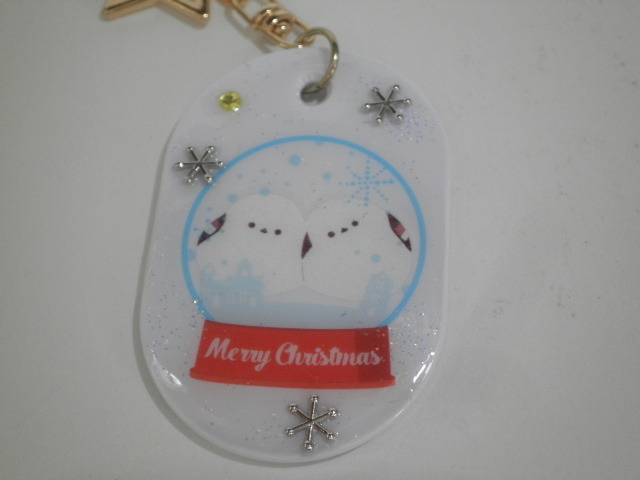 ハンドメイド・レジン ☆シマエナガ(イラスト)☆ オーバル型プレート・キーホルダー(リバーシブル)