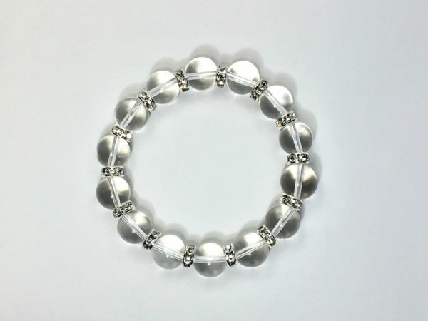こちらは、12mm玉の水晶を使用した天然石ブレスレットです。石との間にはロンデルを挟み高級感を演出しています。シンプルなデザインですのでどんなコーディネートとも合わせ易いブレスレットです。石大きさは12mm玉です。内径約18cmです。(サイズ変更の場合は取引ナビにてご連絡をお願いします。) 数に限りがございますので気になる方はお早めにどうぞ。