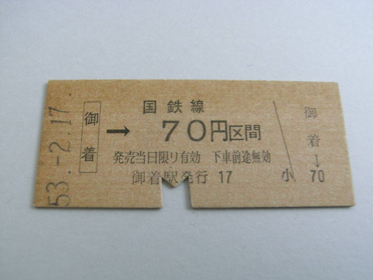 東海道本線 御着→国鉄線70円区間 昭和53年2月17日 御着駅発行 国鉄
