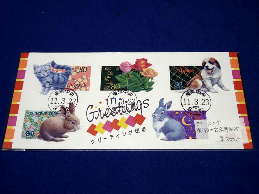 1999年発行の動植物グリーティング切手に東京中央和文ハト印を押印したものです。切手や消印の状態は画像でご確認下さい。