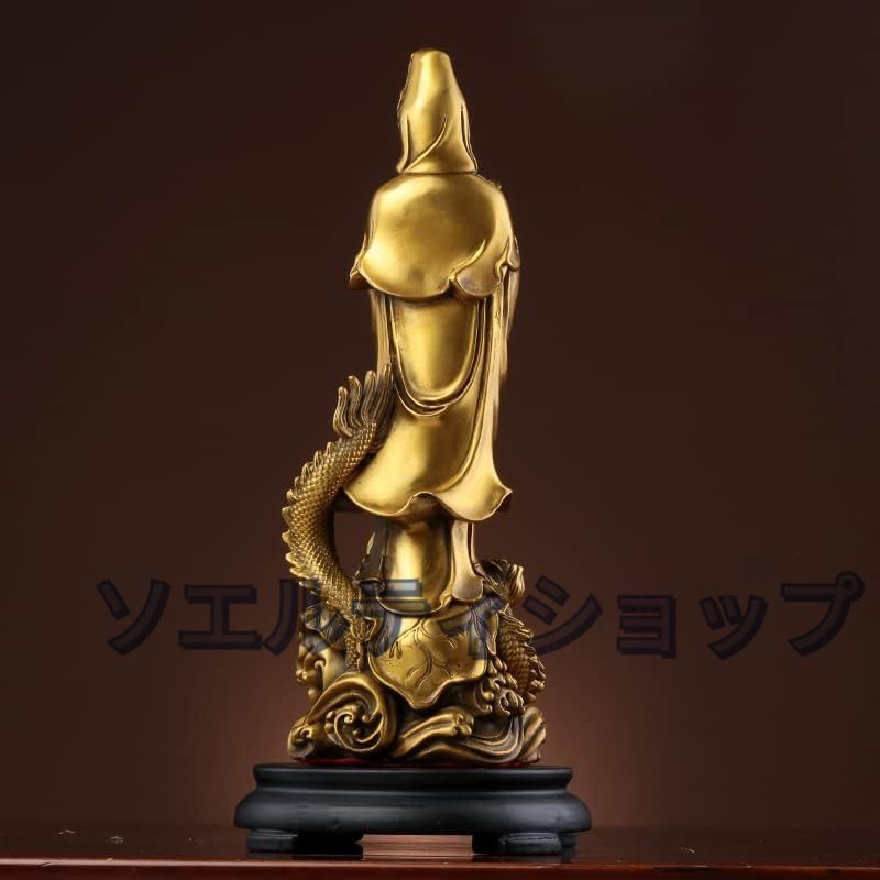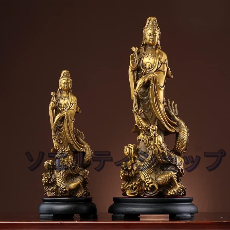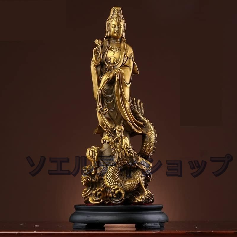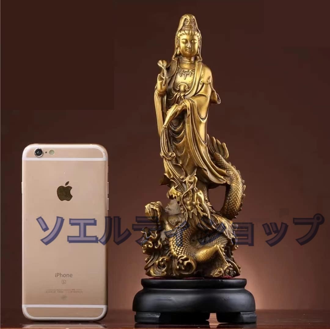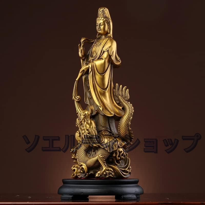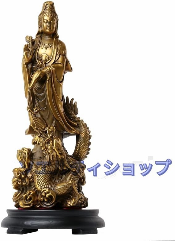 極美品 ★仏像 龍乗観音 観音像 立像 真鍮龍観音 騎龍観音 龍上観音 仏壇仏像 祈る 厄除け 含む 台座 (Size : 30CM)