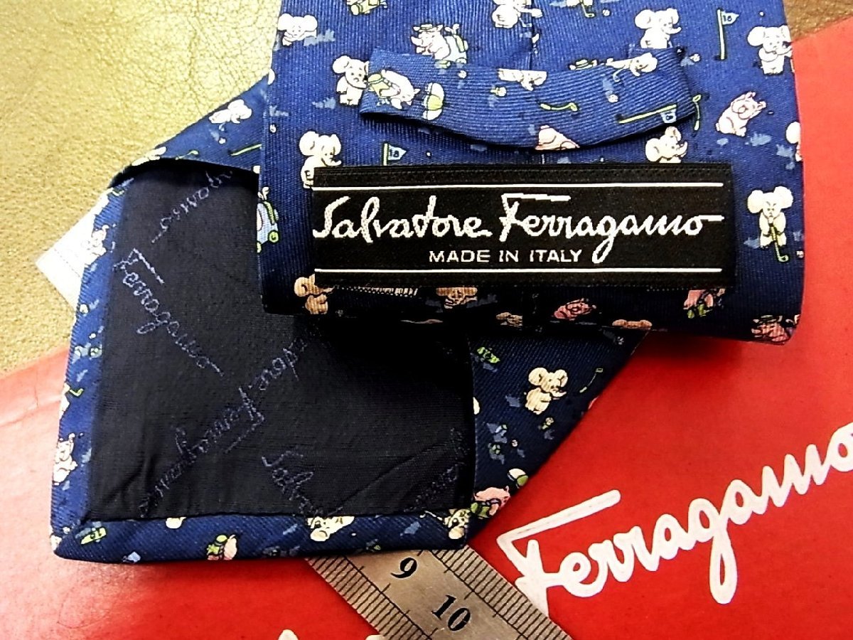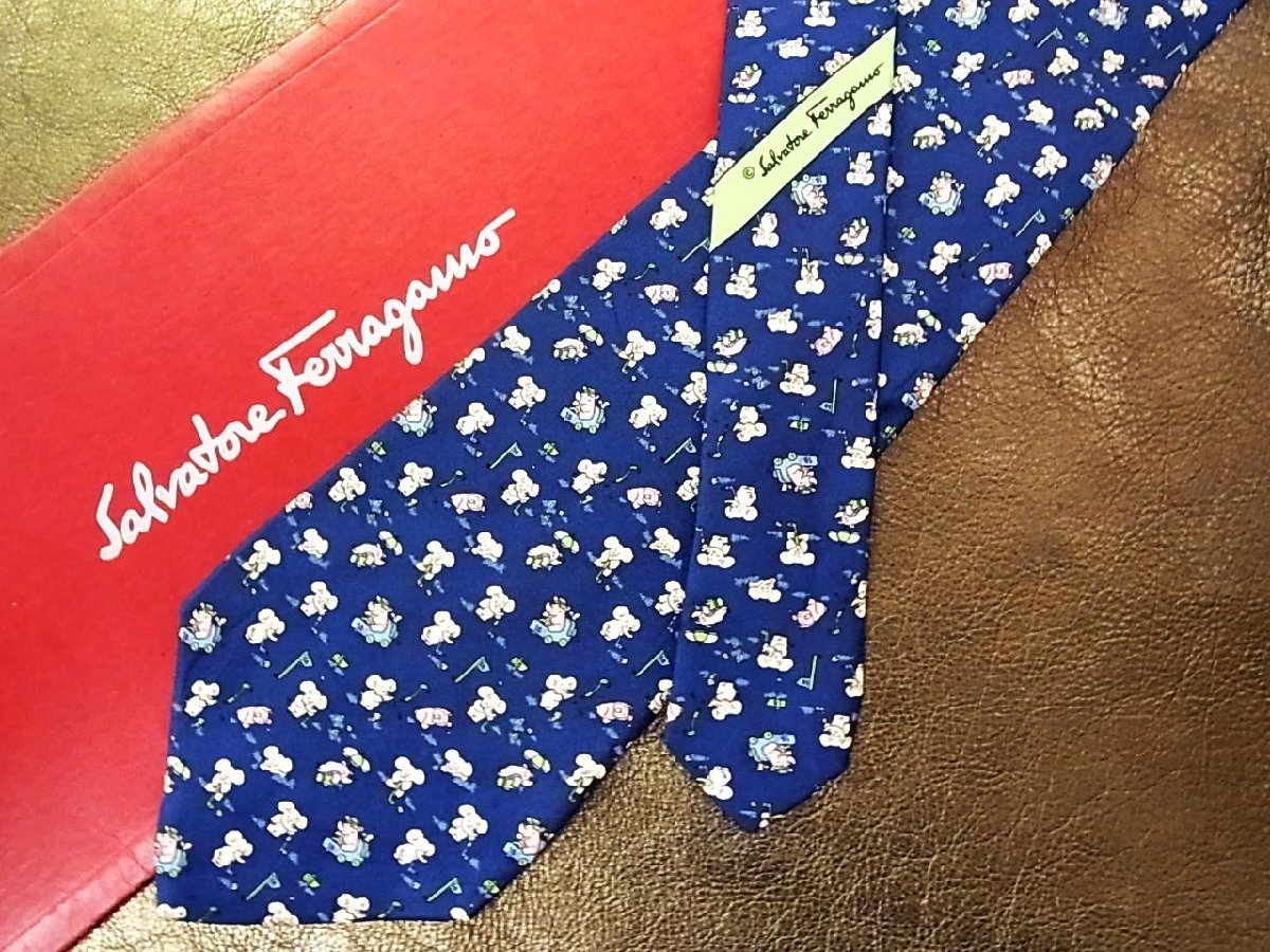 ♪vr0937♪良品♪【Ferragamo】フェラガモ【象 ゾウ 動物 ゴルフ スポーツ 柄】ネクタイ