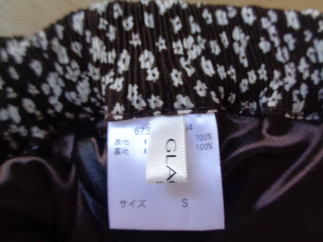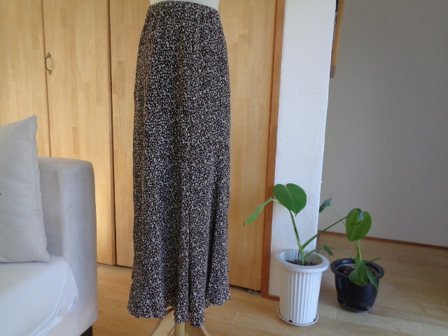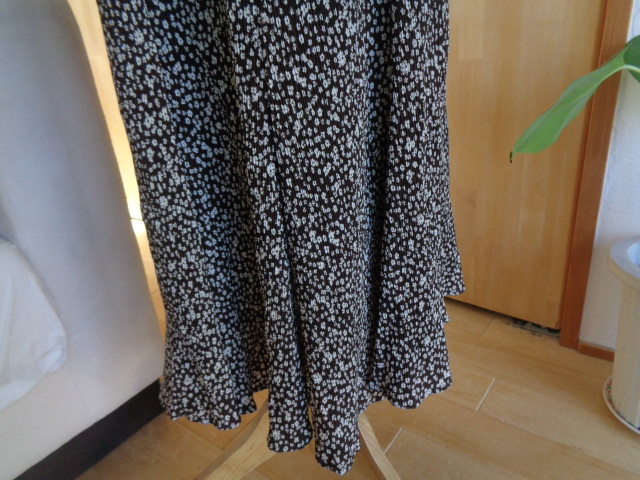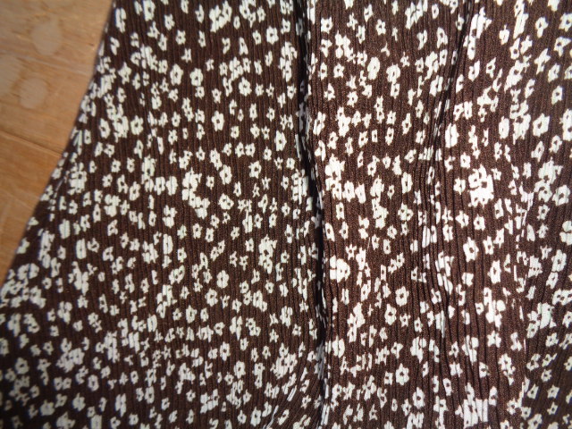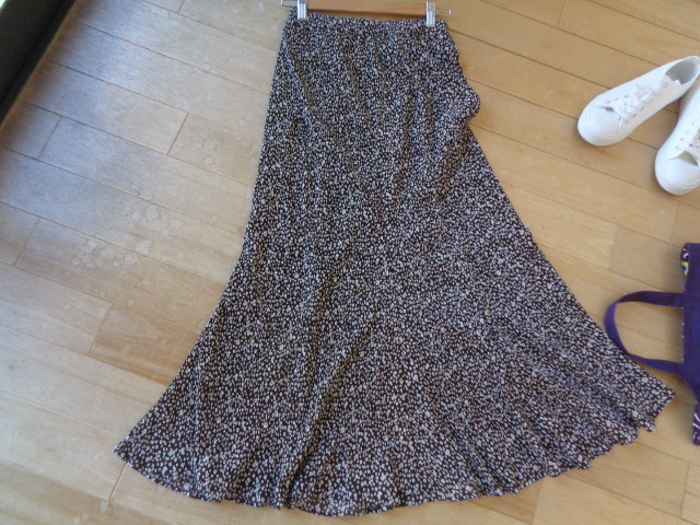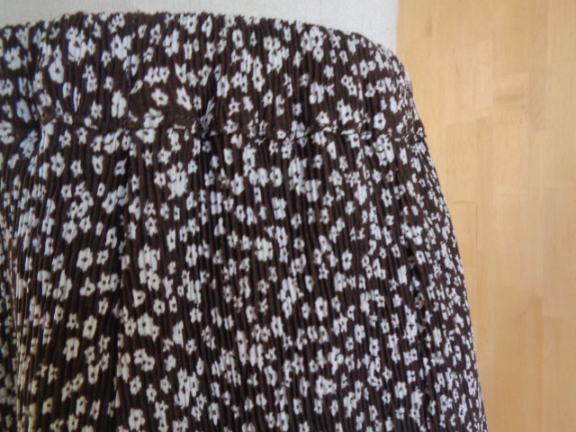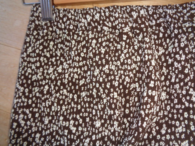 揺れ感エレガント♪ CLACIER 総プリーツ マーメイドスカート ブラウン系 お花柄 ウエストゴム☆ 裏付き S 美品♪