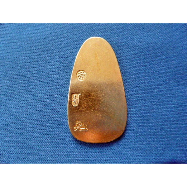 商品は、「上杉牛舌大判の金属製レプリカ(実物の49%の大きさ)」新品一枚です。サイズ 約5×2.7cm 重さ 約9g 材質 金属製(亜鉛 真鍮 銅 ニッケル等使用)上杉牛舌大判(1573年~)とは、上杉謙信が天正年間加賀能登をおさめた時、能登にて鋳造されたものです。真正品は極めてすくないです。