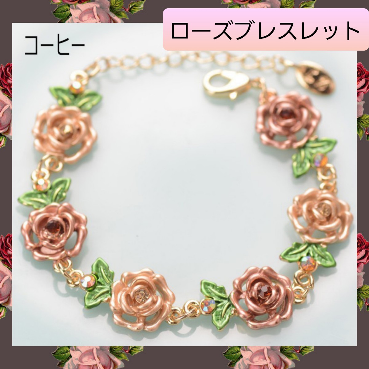 ブラウン系 コーヒーカラーの薔薇のアンティーク調のエレガントなアクセサリーです。
