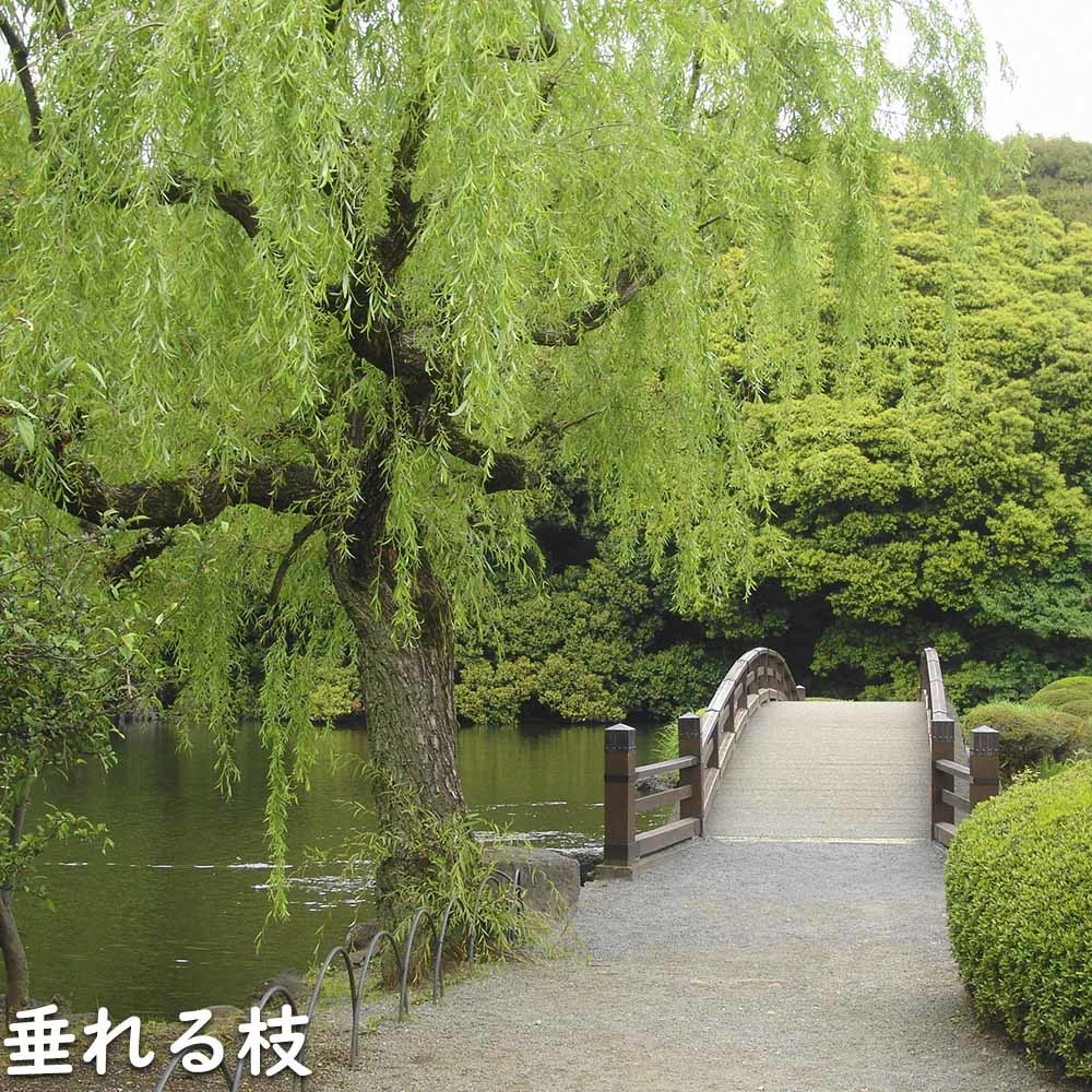 シダレヤナギは公園などによく植えられます。独特のたれる枝葉は魅力的です。成長が早い品種です。