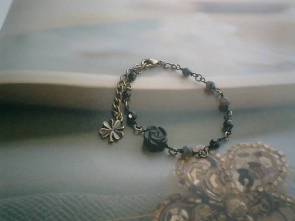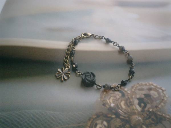 センチメンタル・ガール・・シリーズです♪切ない思い・・シックなオニキスのブレスレットです♪4ミリのランダムカットのオニキスに4ミリの丸玉のラブラドライトやオニキスの両面薔薇を合わせてさりげなくロマンチックしています♪長さは全長22センチ位で調節自由です♪お揃いのブレスレットやネックレスも出品しています♪♪シンプルで飽きのこないいつまでも着けられるデザインを考えて作りました!ハンドメイドをご理解頂いてノークレーム、ノーリターンでお願いします