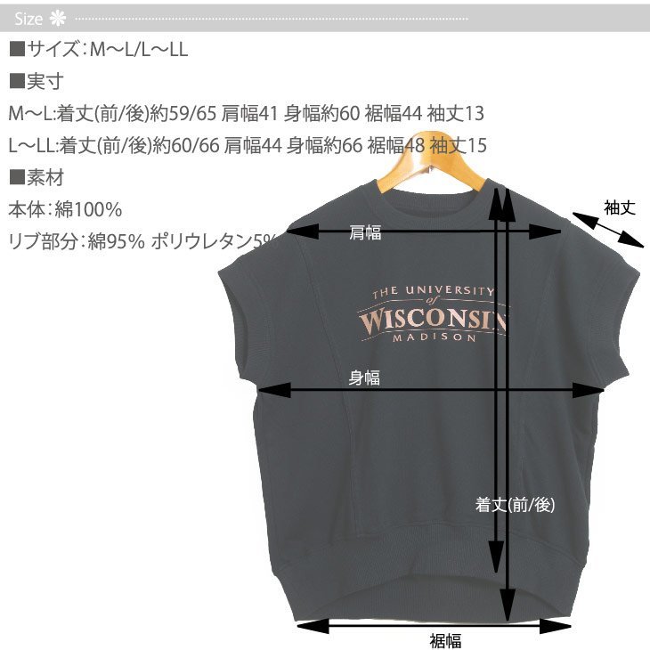 ■実寸 L~LL:着丈(前/後)約60/66 肩幅44 身幅約66 裾幅48 袖丈15