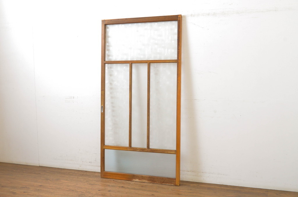 アンティーク建具 レトロなプレスガラス入り!光の反射でお部屋を彩るガラス戸1枚(引き戸)(R-063583)