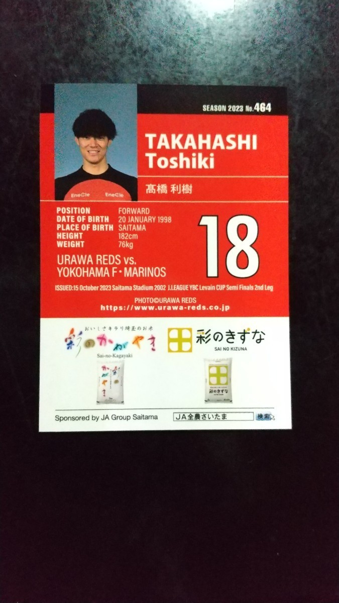 2023年の浦和レッズのマッチデーカードの髙橋利樹選手になります。カードスリーブと硬質のカードケースに入れて発送いたします。新品になりますのでノークレーム、ノーリターン、ノーキャンセルでお願いします。