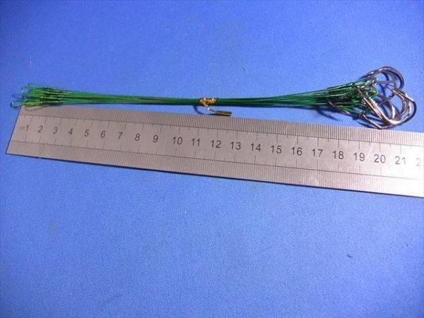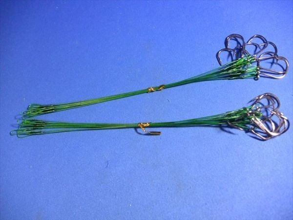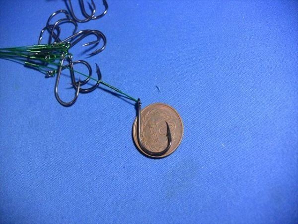 | 商品説明 | 針付ワイヤーリーダー、ワイヤー仕掛け、タチウオ、サゴシなどに サゴシカッター対策に ワイヤー+フック15# 200mm 20本 10円玉は大きさの参考のためです。 |