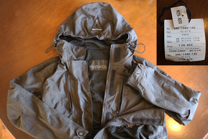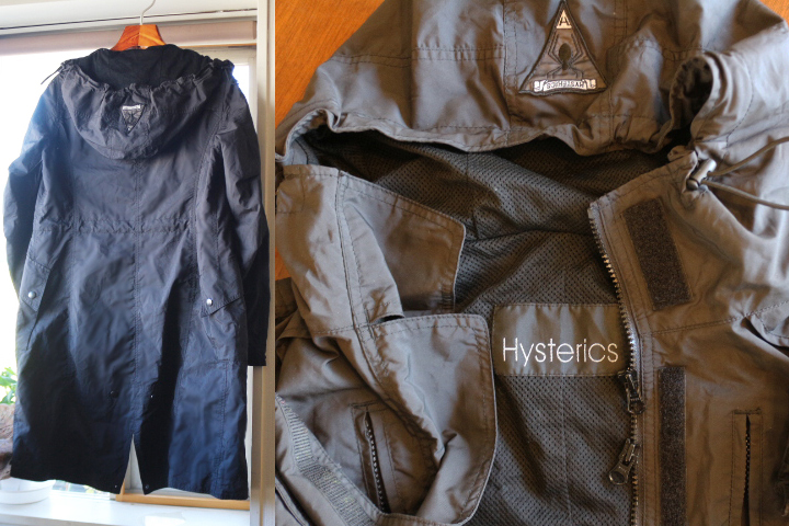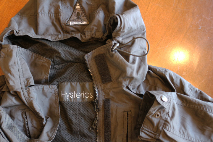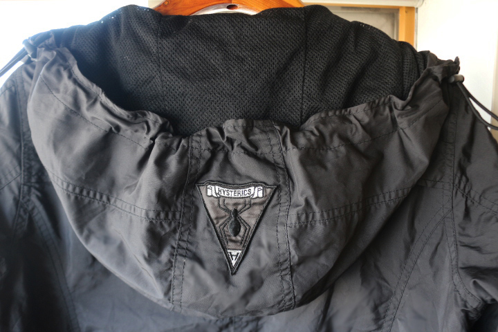 後ろフードの部分に控えめな『hysterics』のロゴ入りのワッペンが付いている所もカッコいいです。