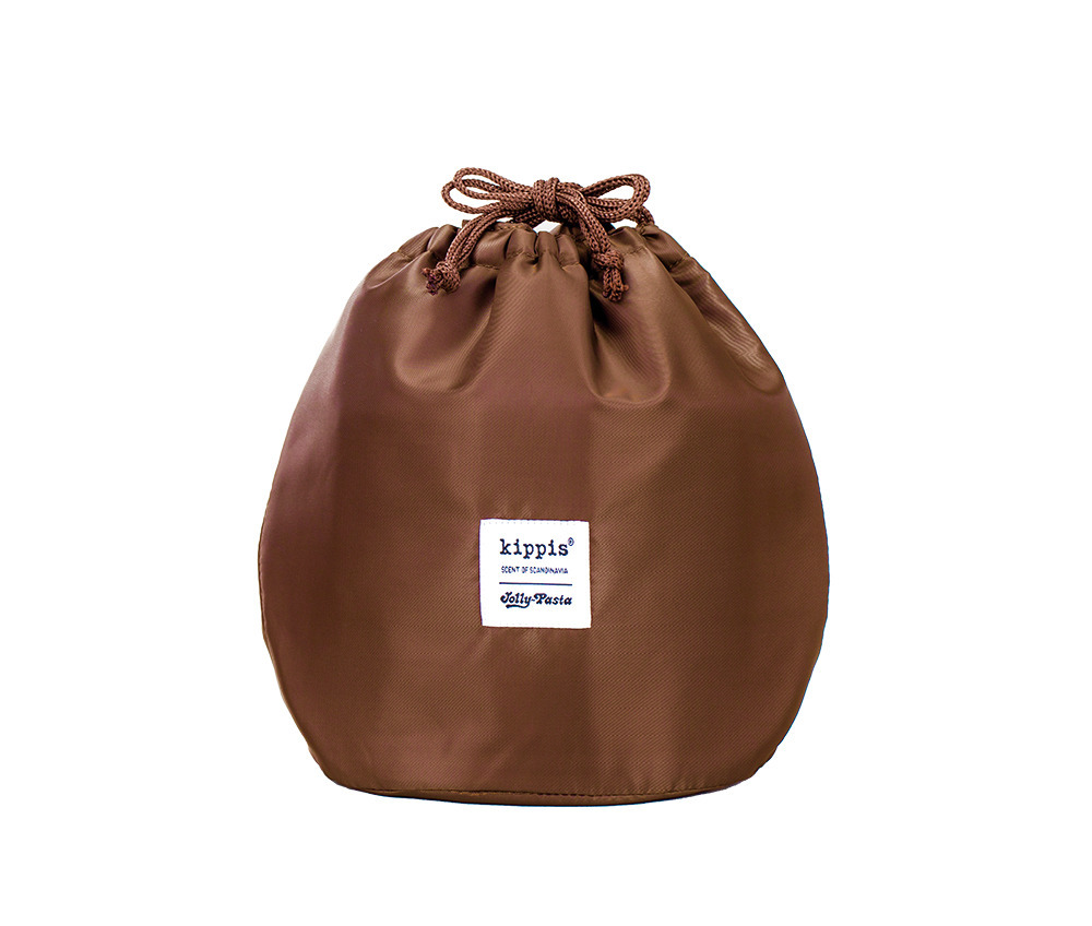 汚れが目立ちにくいブラウンの生地にkippisのロゴをあしらい、