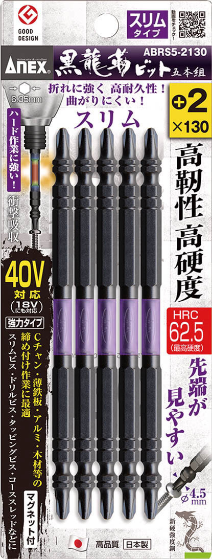 アネックス ANEX 兼古製作所 黒龍靭ビット・スリム(+)2X130 5本組 ABRS5-2130 |