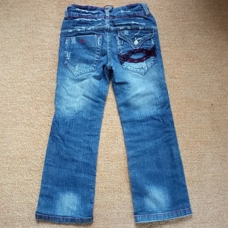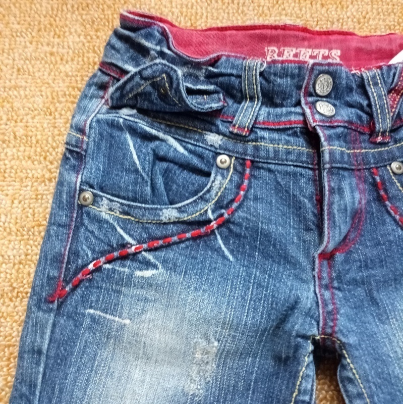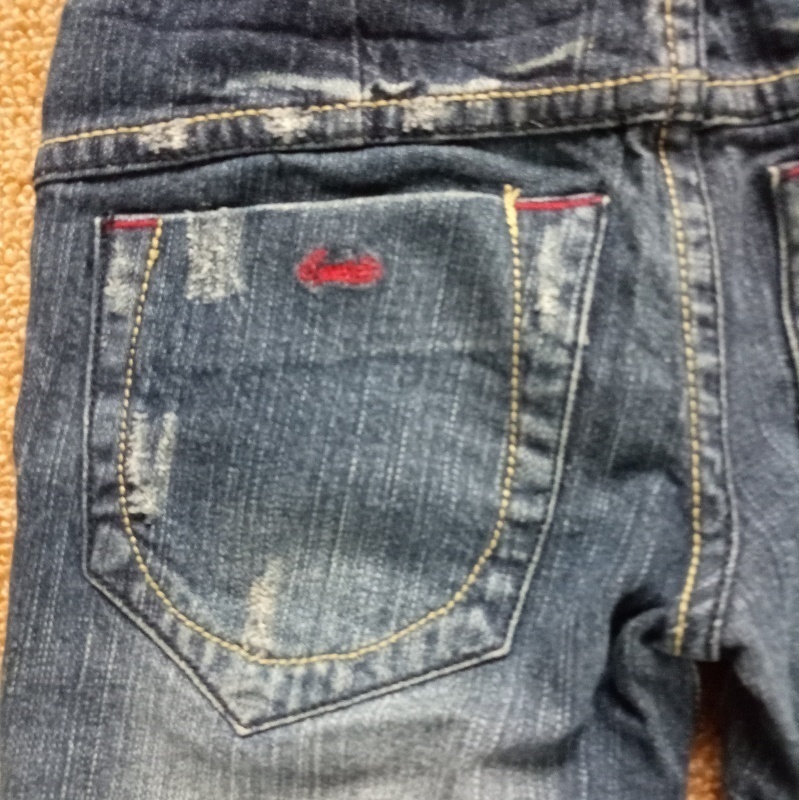 BEETS ジーンズ デニム ジーパン 130 ダメージ加工 ウォッシュ加工 フレアパンツ ワイドパンツ ベルボトム フラップ ポケット ビーツ 韓国