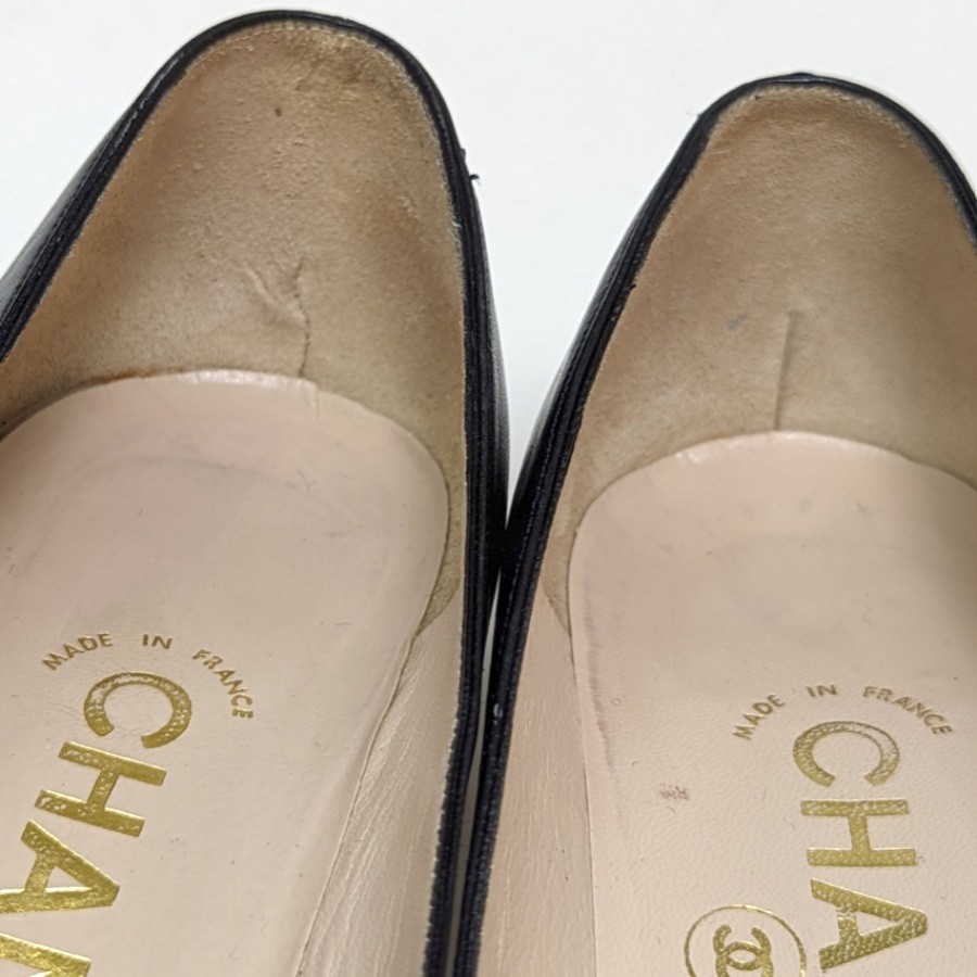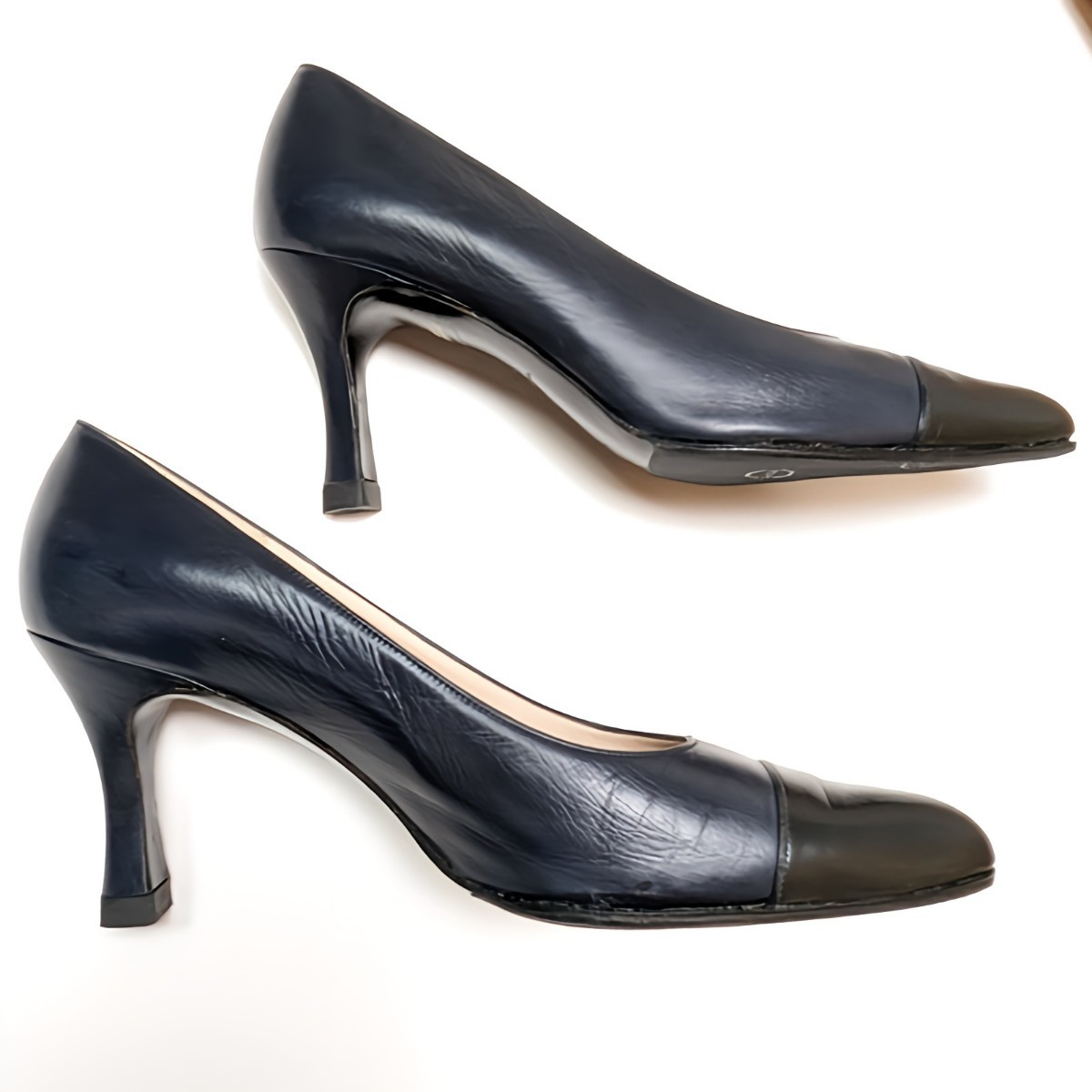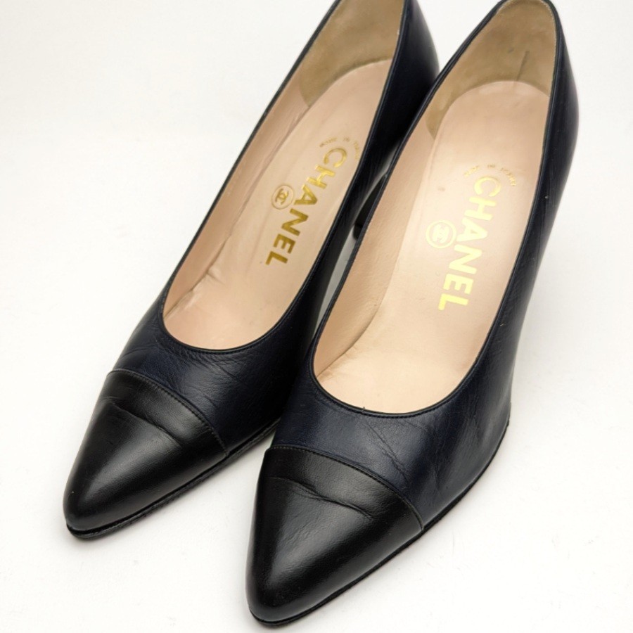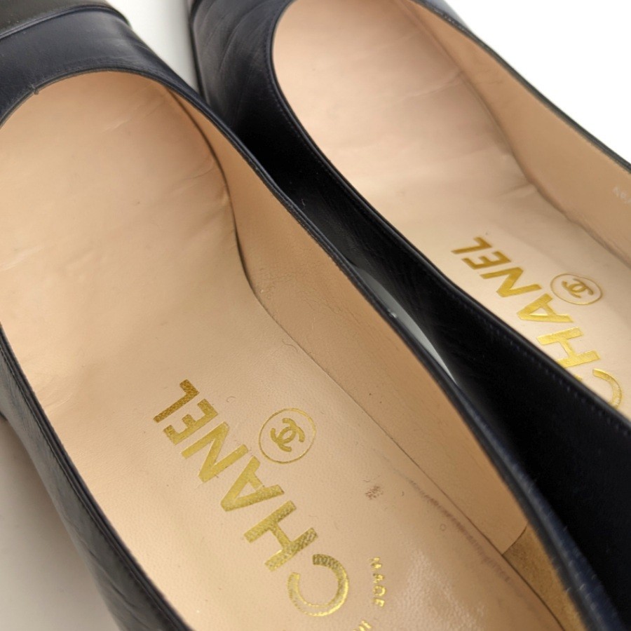 シャネル ゴートスキン パンプス 5.5B 36.5 約23 ネイビー CHANEL