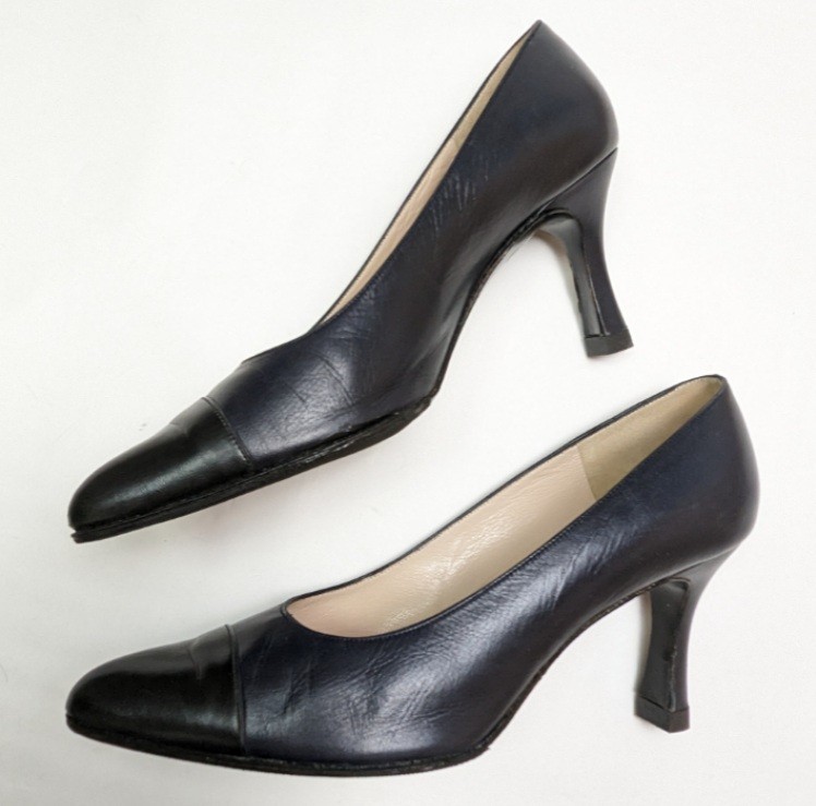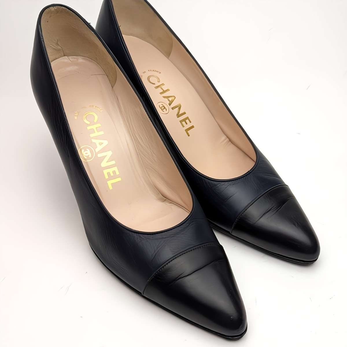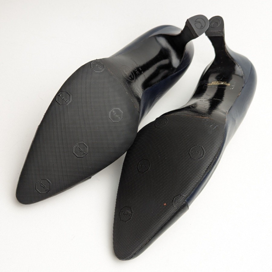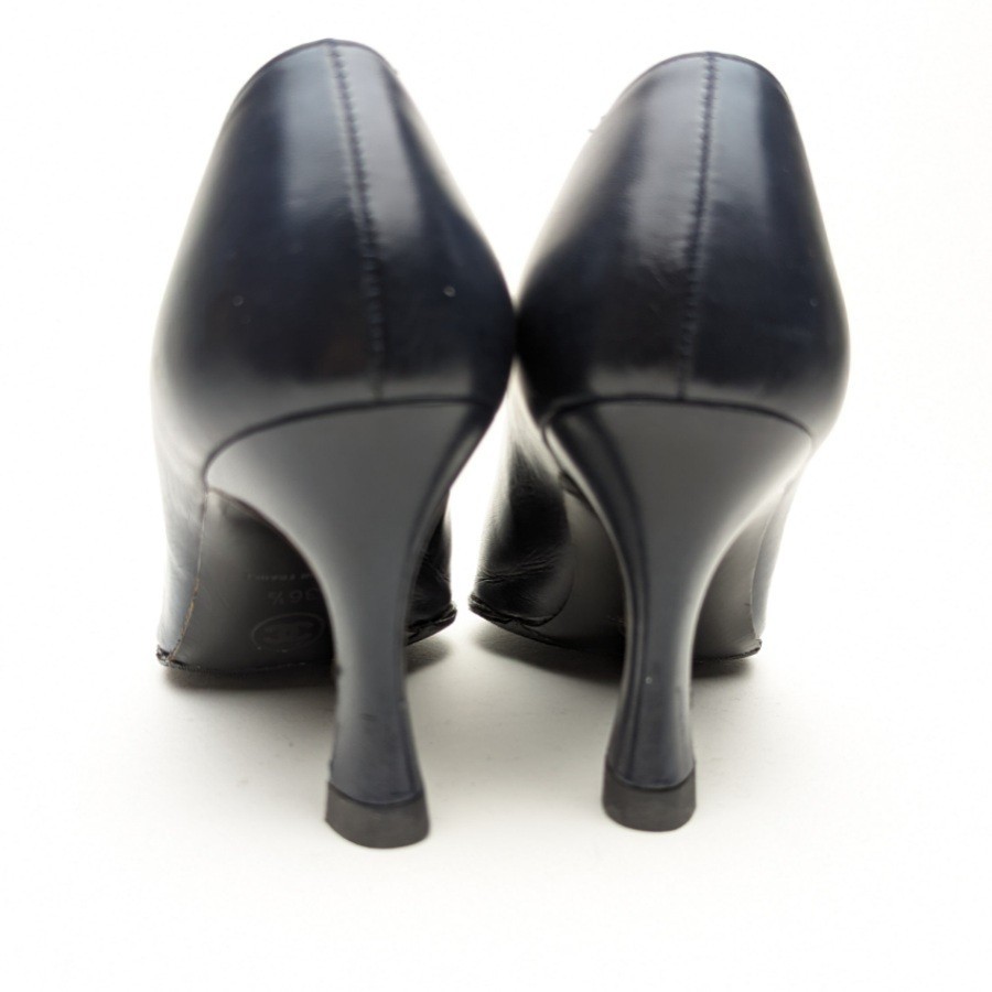 シャネル ゴートスキン パンプス 5.5B 36.5 約23 ネイビー CHANEL