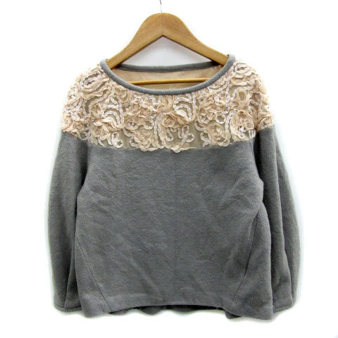 グレースコンチネンタル GRACE CONTINENTAL ニット カットソー 長袖 ラウンドネック レース チュール ウール 36 グレー /MS40 レディース