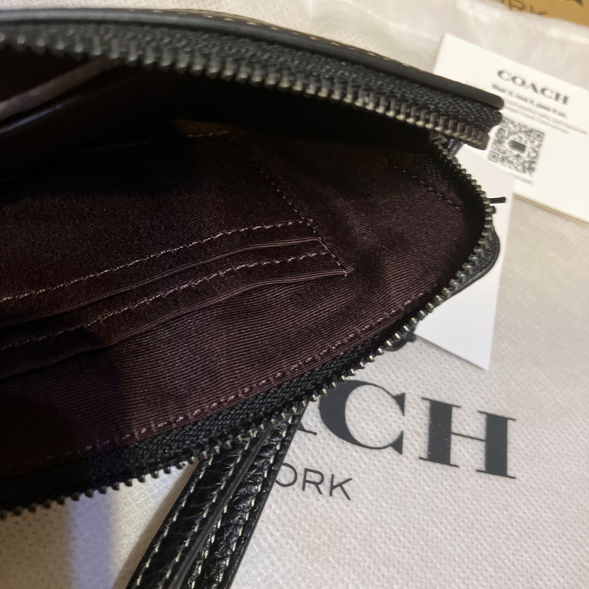 ブランドの上質な革によるストラップ付きポーチ リファインド ペブル レザー カードスロット x 2 ジップ トップ開閉、裏地付き リスト ストラップ付き 縦10cm x 横16cm x マチ1.5cm iPhone 11 Pro(5.8インチ)まで収納可能 ※画像は、実際の商品と色味、仕様、サイズ等が 若干異なる場合がございます。 店頭即完売の人気商品ですので是非お早めにご検討ください。 値下げの予定は当分ございませんのでご了承ください。 国内のコーチのお店で購入した本物でございます。 |