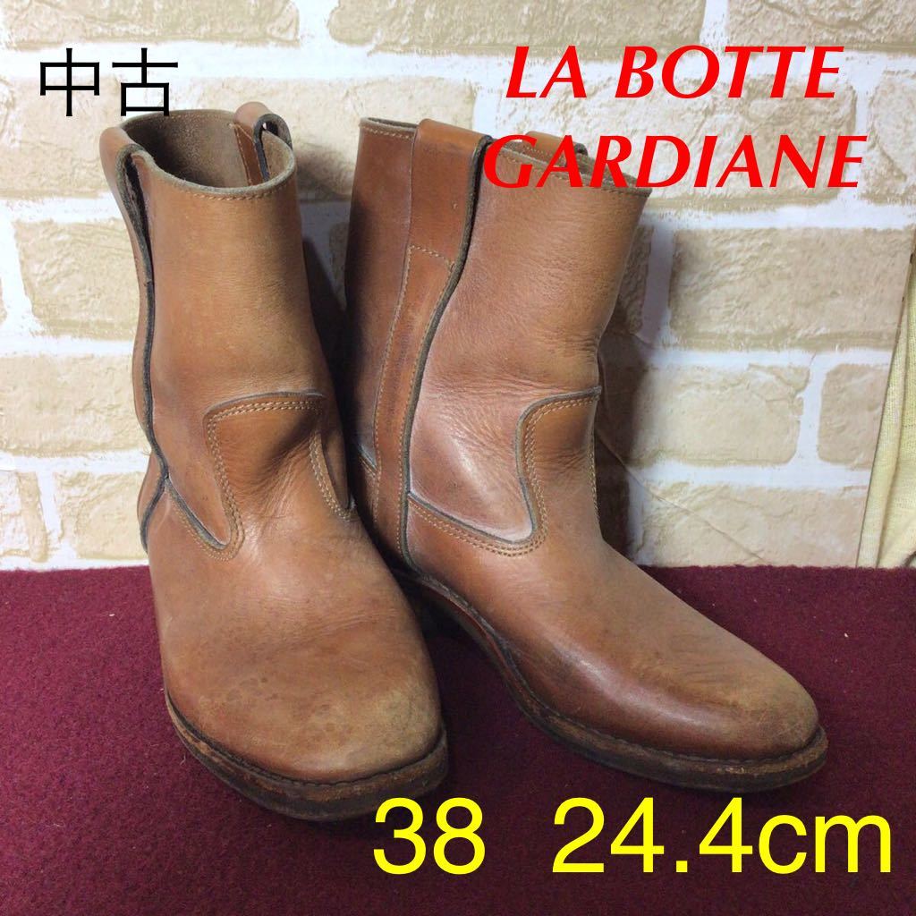【売り切り!送料無料!】A-24 LABOTTEGARDIANE!ラ・ボット・ガルディアーヌ!ショートブーツ!38!24!24.5!ブラウン!本革!ブーツ!中古