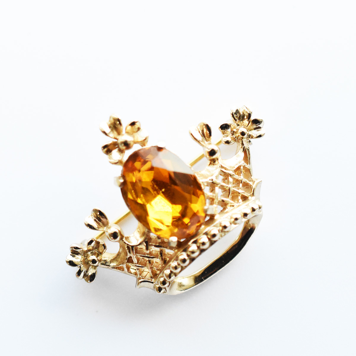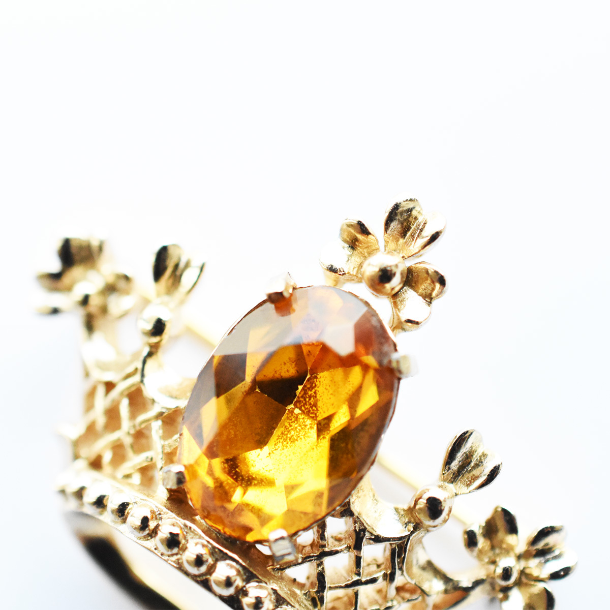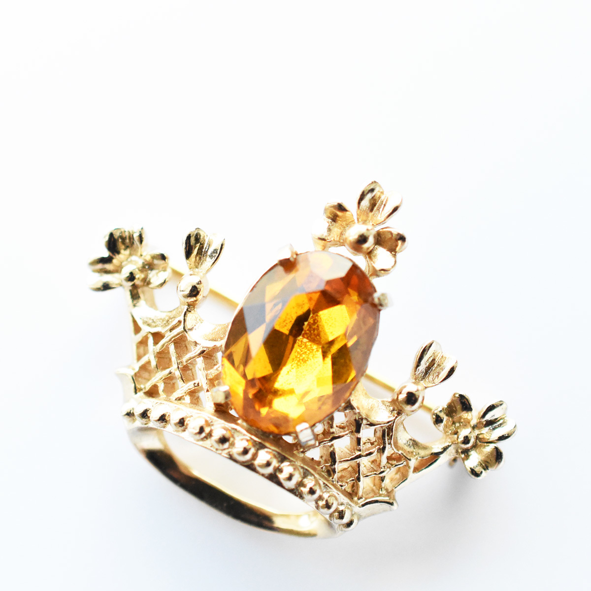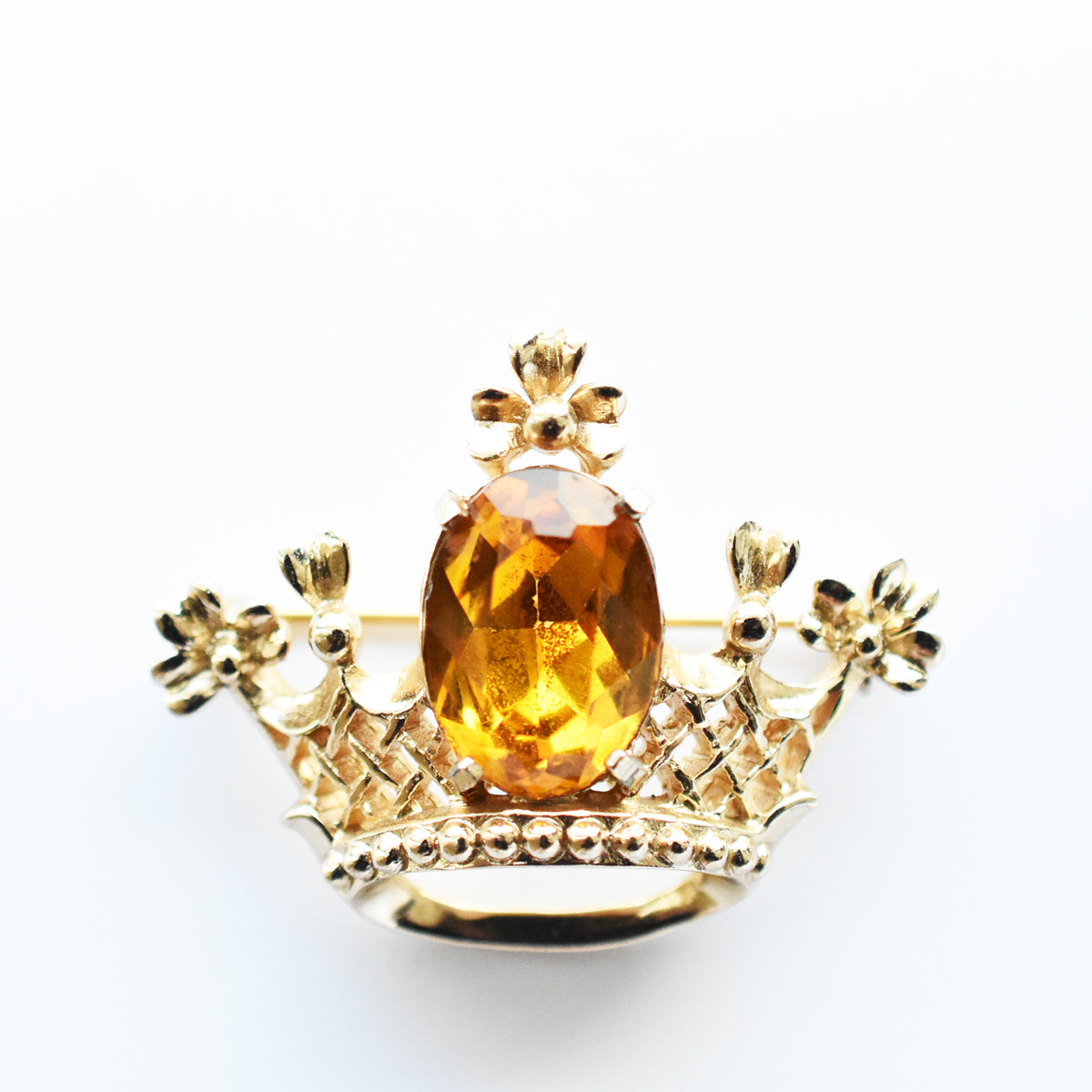 大粒のイエローラインストーンが印象的なクラウンモチーフのヴィンテージブローチです。