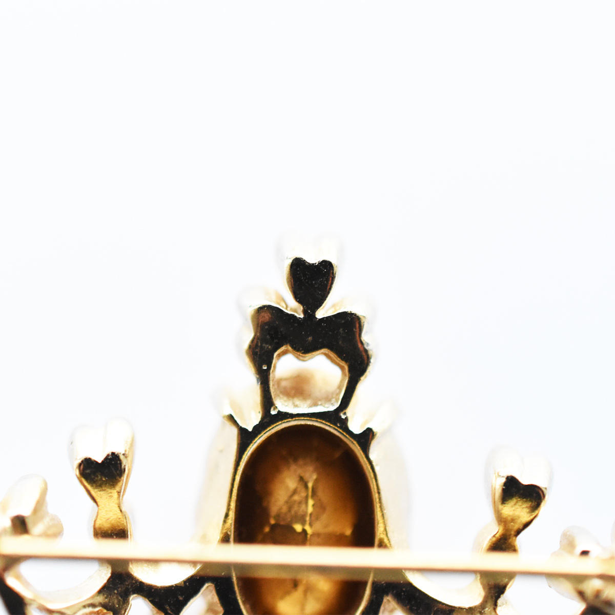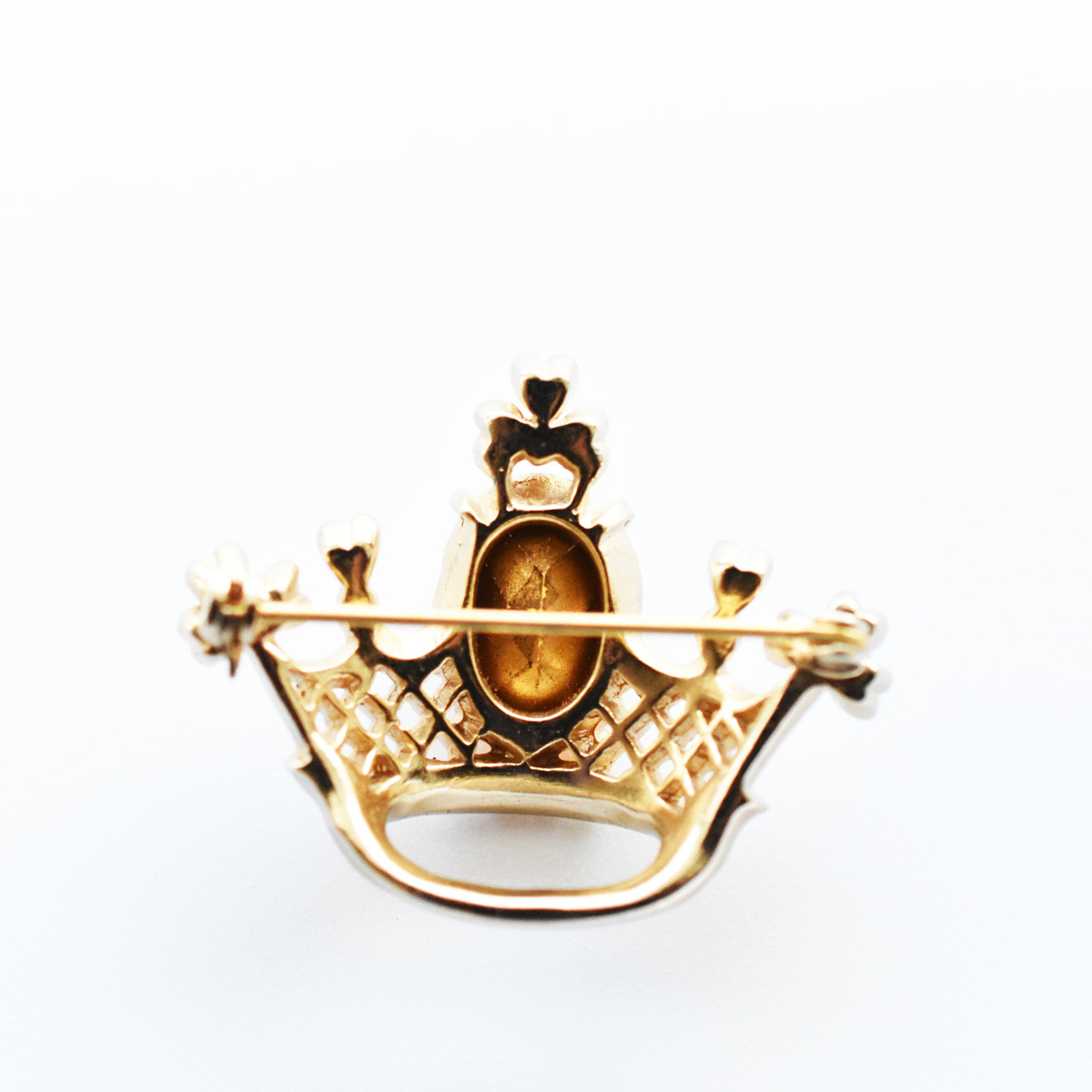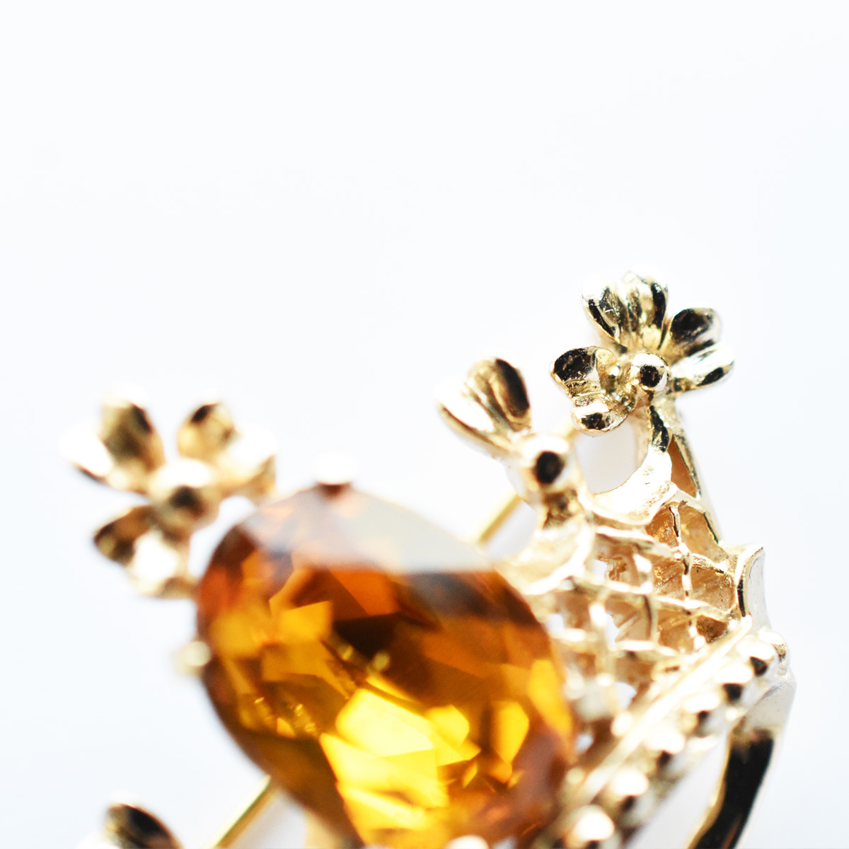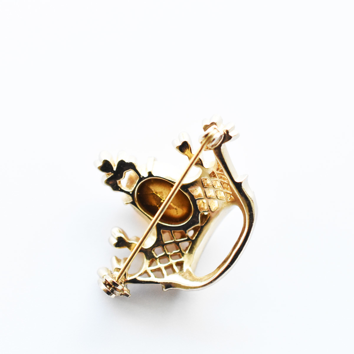 大粒のイエローラインストーンが印象的なクラウンモチーフのヴィンテージブローチです。