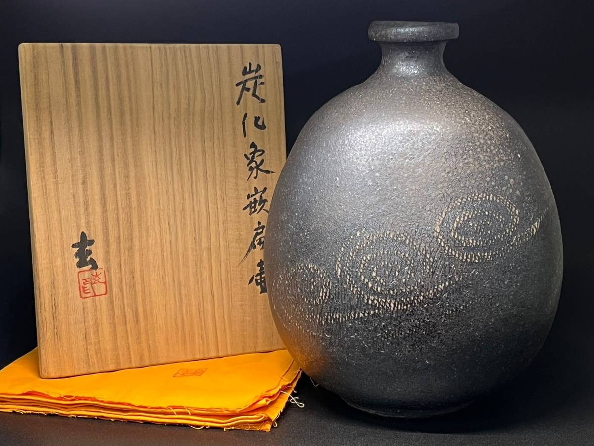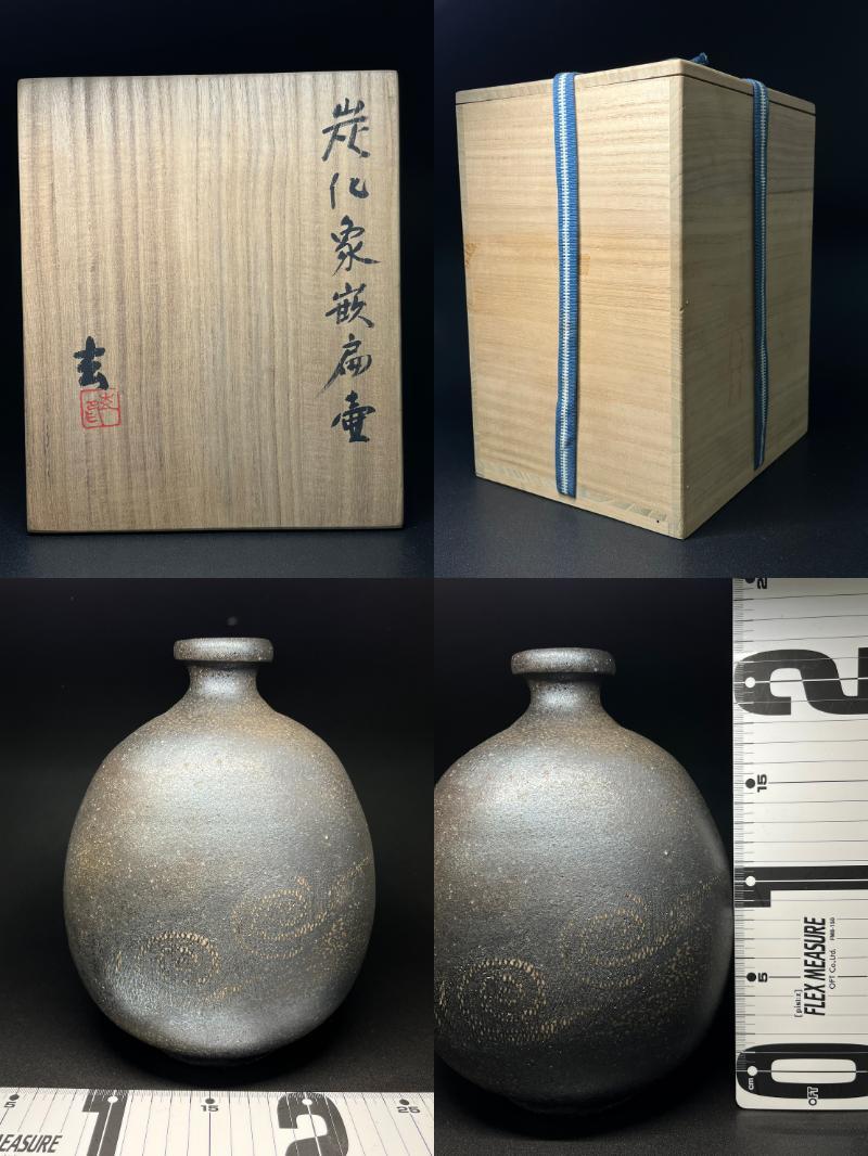 ●小野寺玄 造 炭化象嵌扁壺 渦紋 陶器 骨董 置物 飾物 日本伝統工芸品 美術品 芸術 時代物 古美術 共箱 ■サイズ:横幅 18cm/高さ 24cm ※素人寸法の為、若干の誤差はご了承ください。 ■状態につきましては経年に伴うスレ・汚れ・小キズ などが見られます。 ※その他の細かな状態は写真にてご確認・ご了承の上 ご入札くださいませ。 ●こちらの商品などは時代物や古いお品・骨董品となり ますので、細かな状態を気にされる方・神経質な方の ご入札はご遠慮くださいませ。【ZR】 |