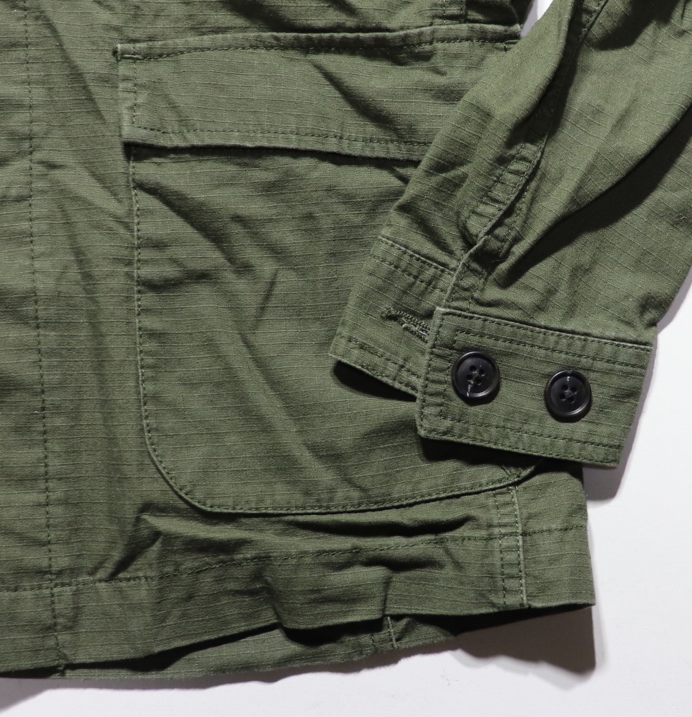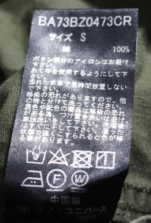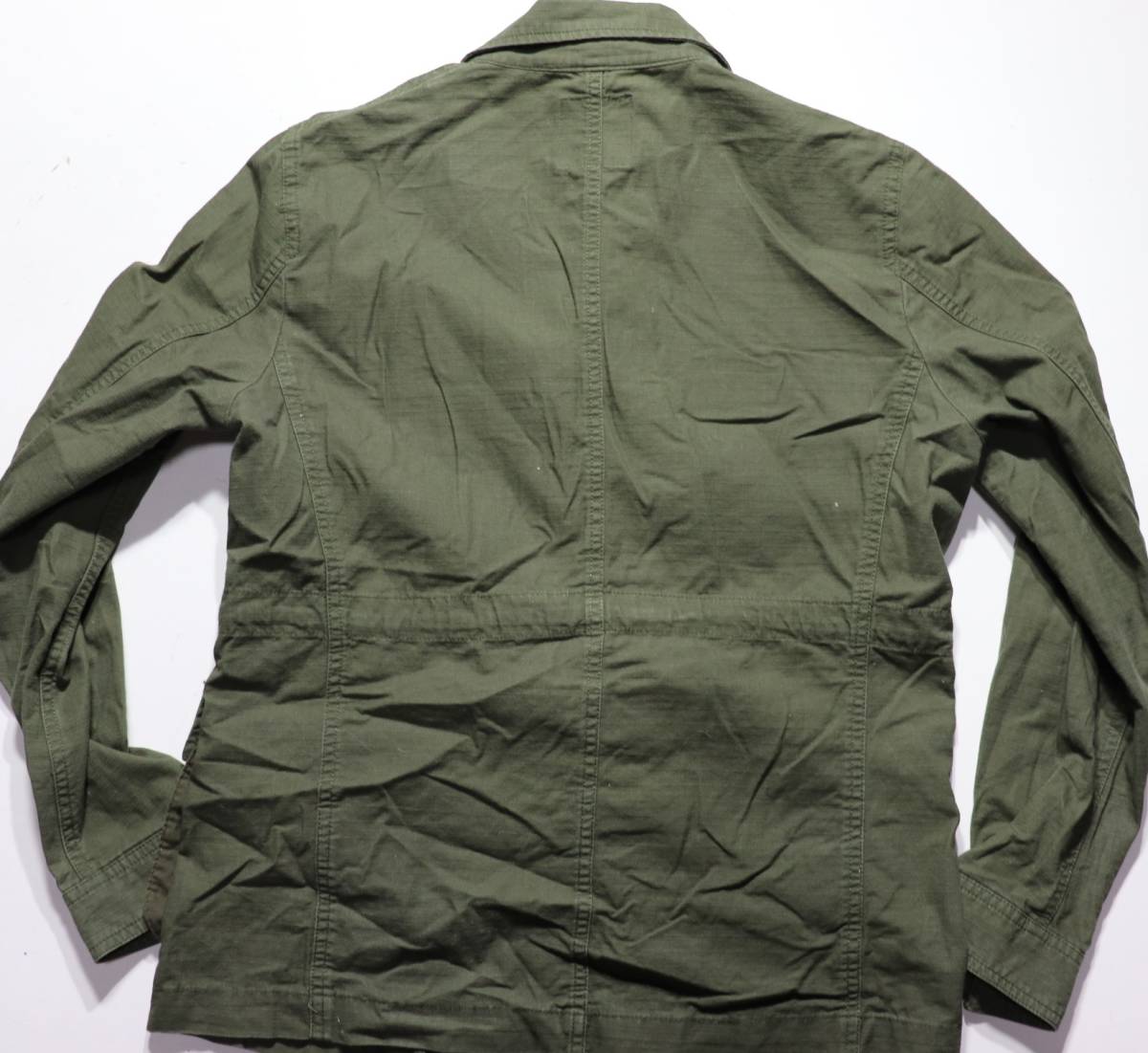 NANOのミリタリージャケットです。色はカーキで素材は綿100%です。▲程度:USEDですが破れやダメージになるような汚れ等はありません。古着を理解していただける方の入札を希望いたします。▲サイズ:表示はSで実寸では肩幅:43センチ、袖丈:60センチ、着丈64センチ、身幅;51センチです。▲他にも多数出品していますので、一度ご覧ください。
