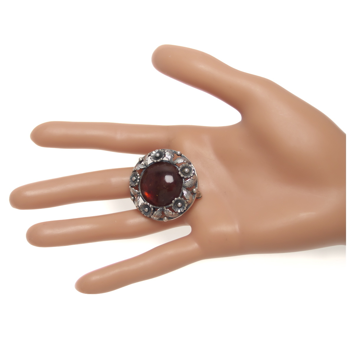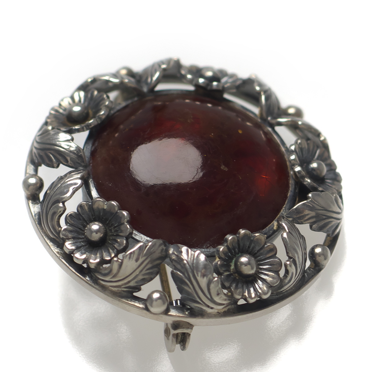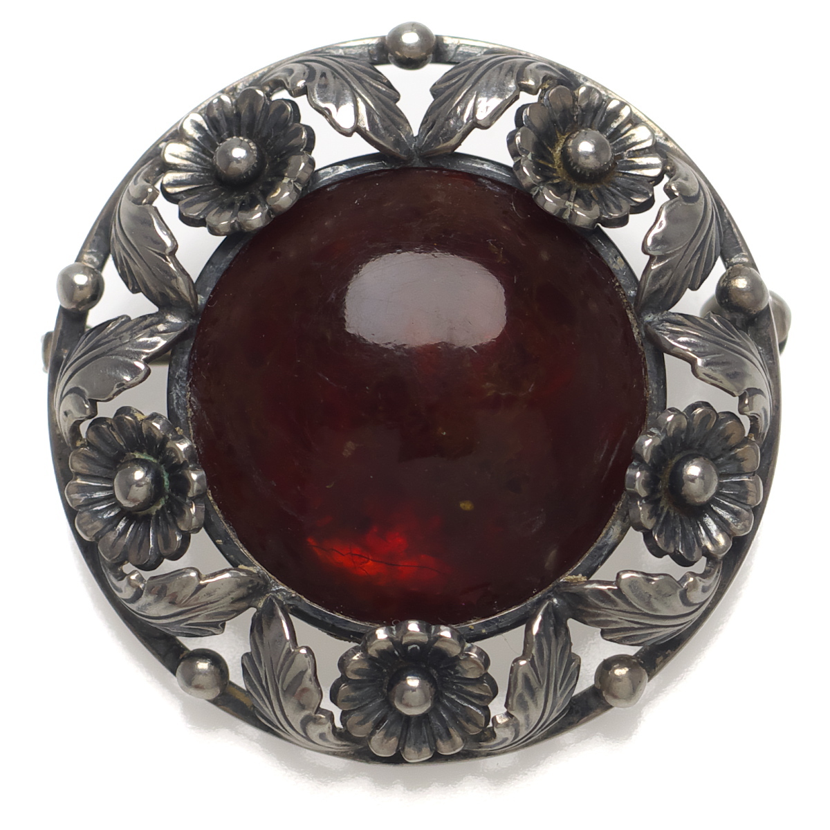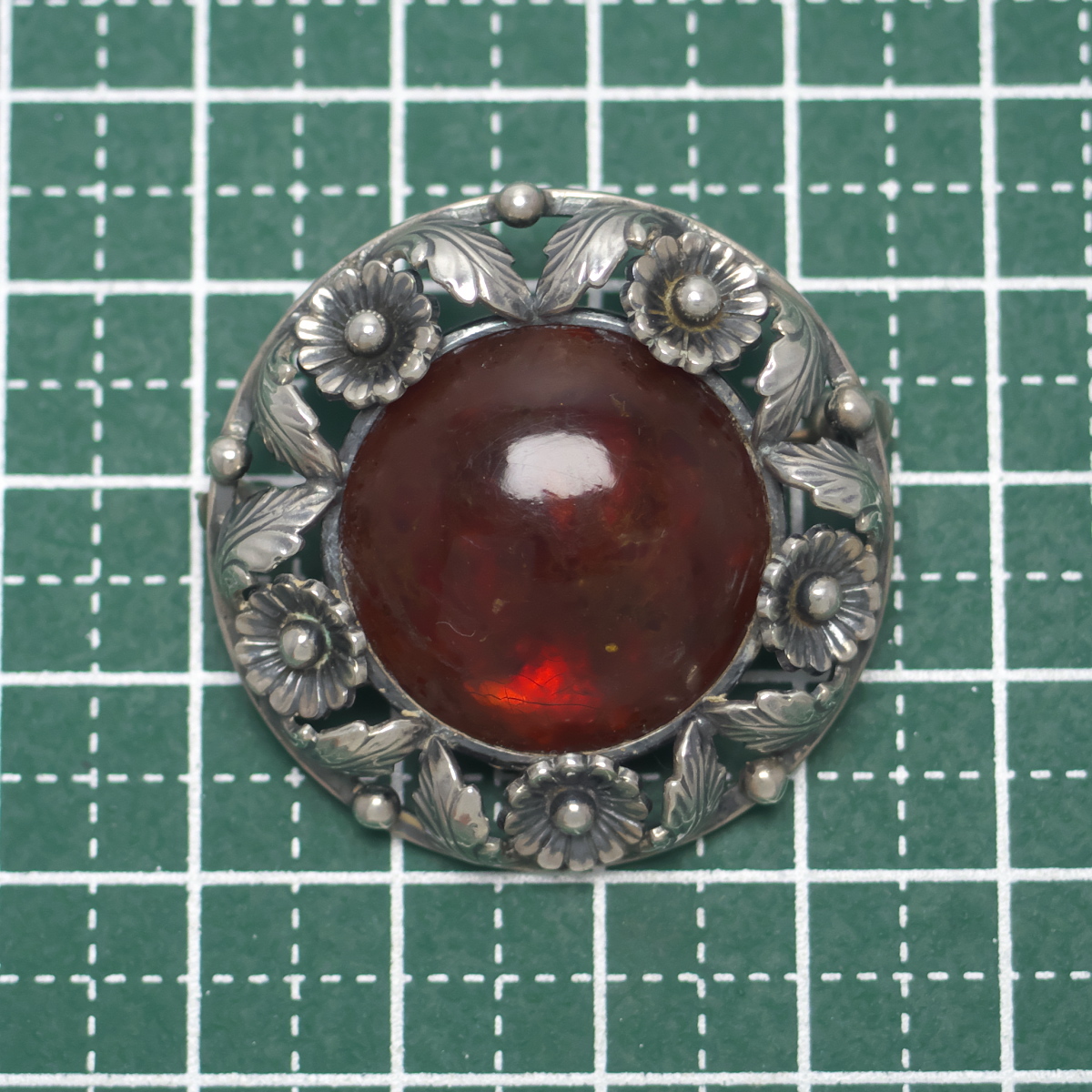 S1062◆【N.E. FROM】◆ スターリングシルバー 12g アンバー 琥珀 925 ◆ 北欧Niels Erik フラワーモチーフ ◆ ヴィンテージブローチ