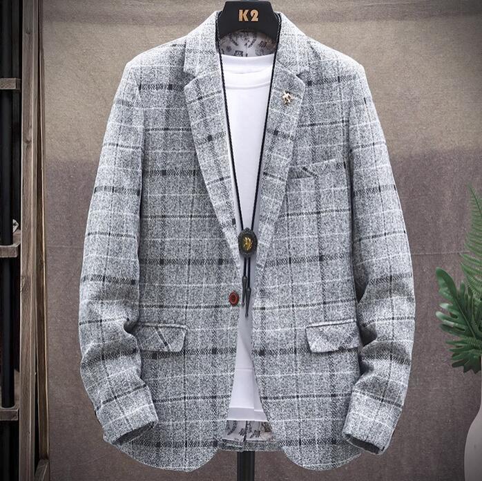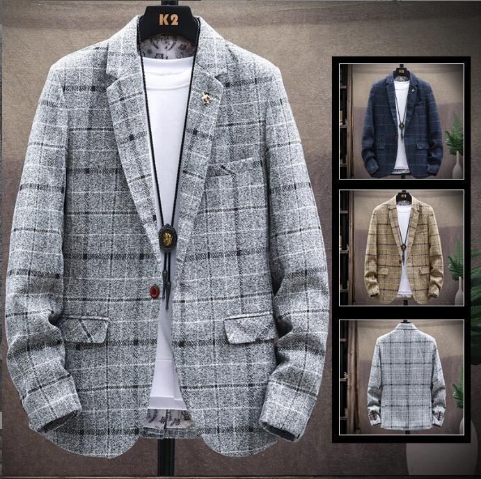 メンズ テーラードジャケット コート スーツジャケット ブレザージャケット ブルゾン ビジネススーツ 春秋アウター チェック柄 グレーM~5XL