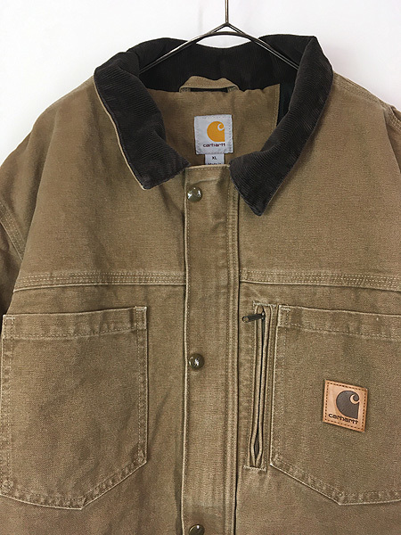 内外合わせ7ポケット、襟コーデュロイ、着丈長め、裏地は中綿入り起毛キルティング、袖裏裏地と腰下部分の裏地は中綿入りナイロンキルティング、ウエスト内側ドローコード付き、袖先内側リブ付き、フロントはスナップボタンとジップの二重構造で防寒性も期待できます。