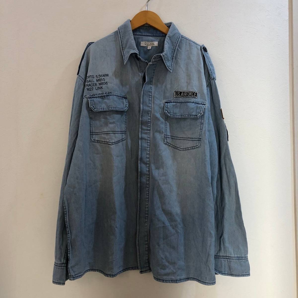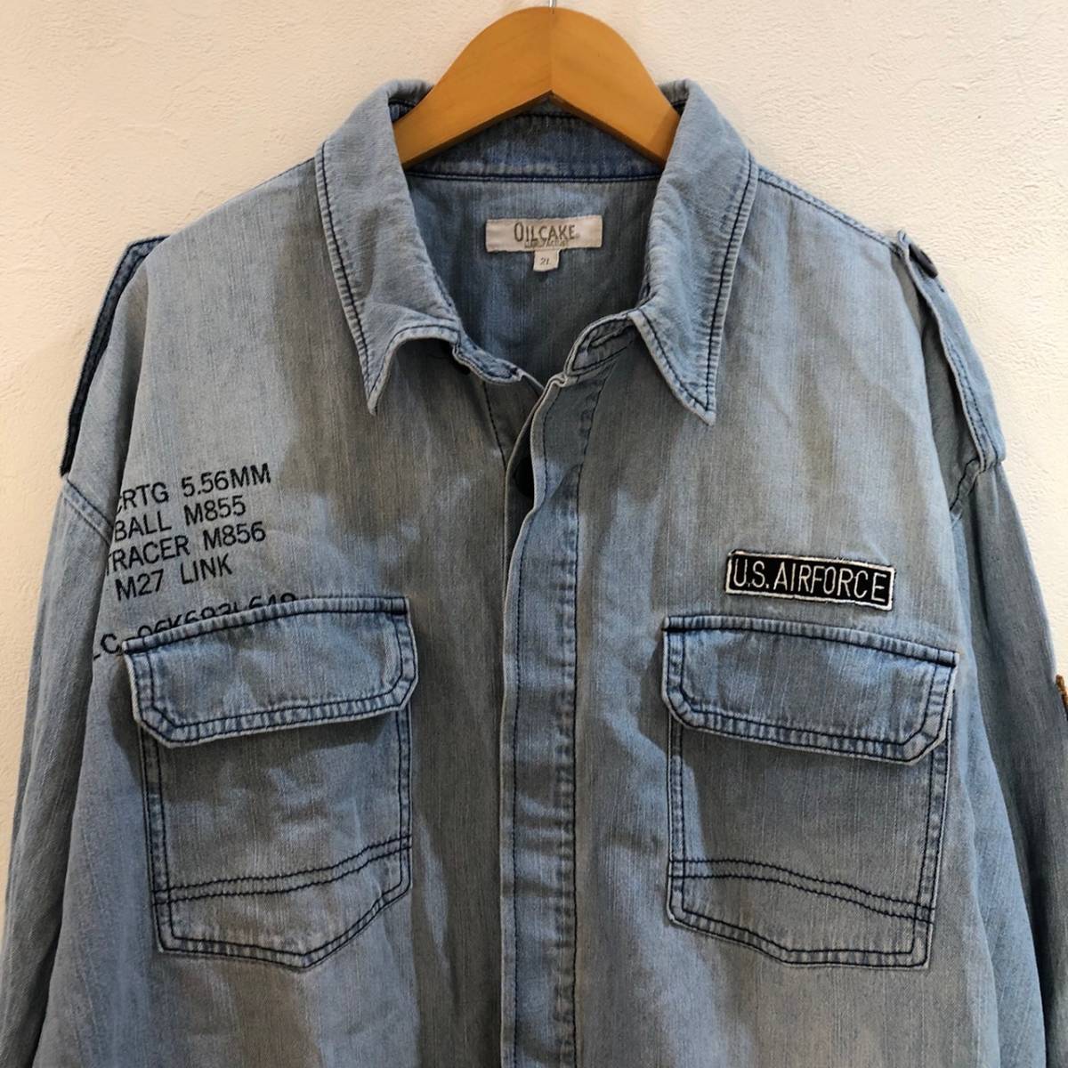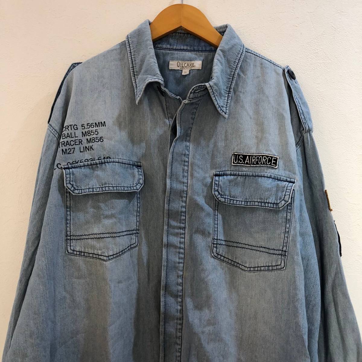 商品: OIL CAKE/ 長袖 デニムシャツ ブルー 水色 メンズ 2L
