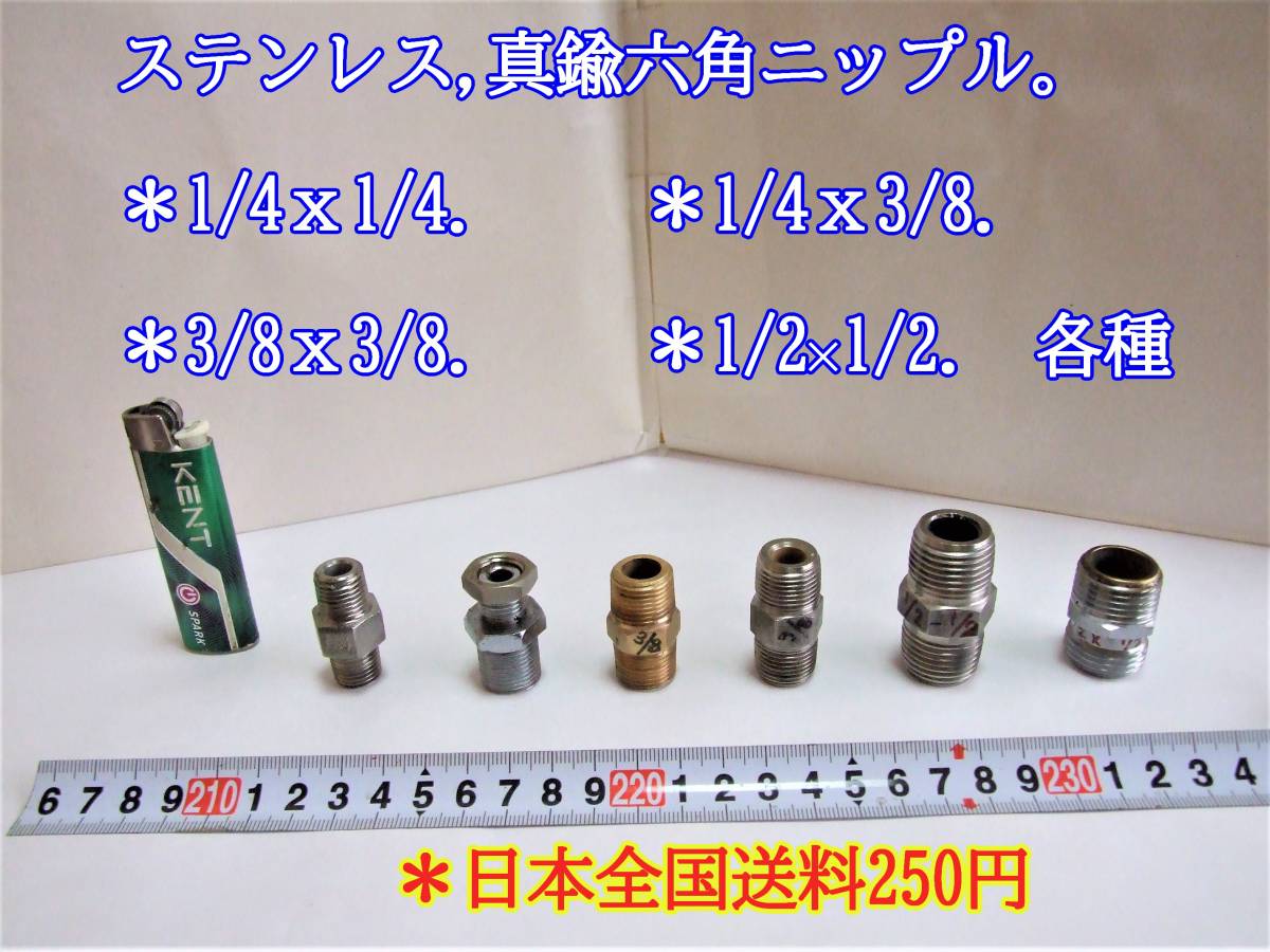 23-4/2 ステンレス,真鍮六角ニップル。異径ニップル。*1/4x1/4.*3/8x3/8.*1/21/2.各種