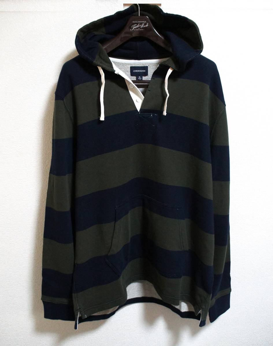 【新品】サイズ:XL J.CREW JEANS ジェイクルー ジーンズ French Terry Rugby Hoodie ラグビー パーカー ダークモス/ネイビー