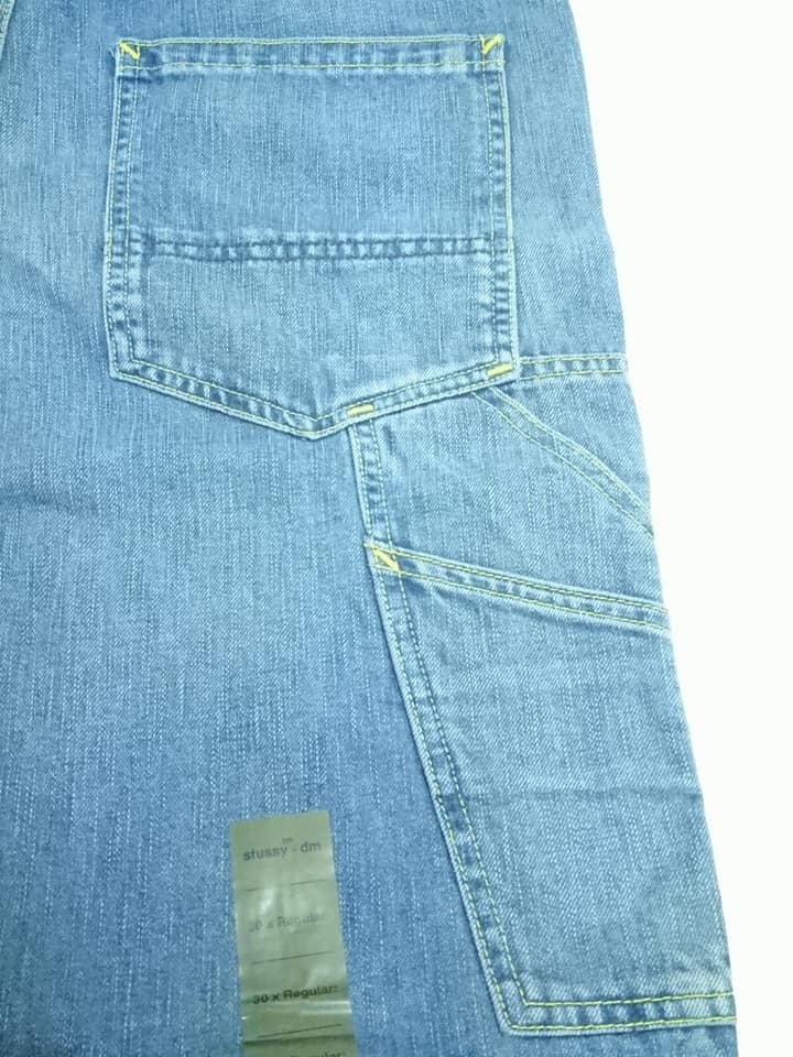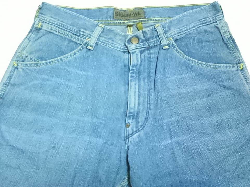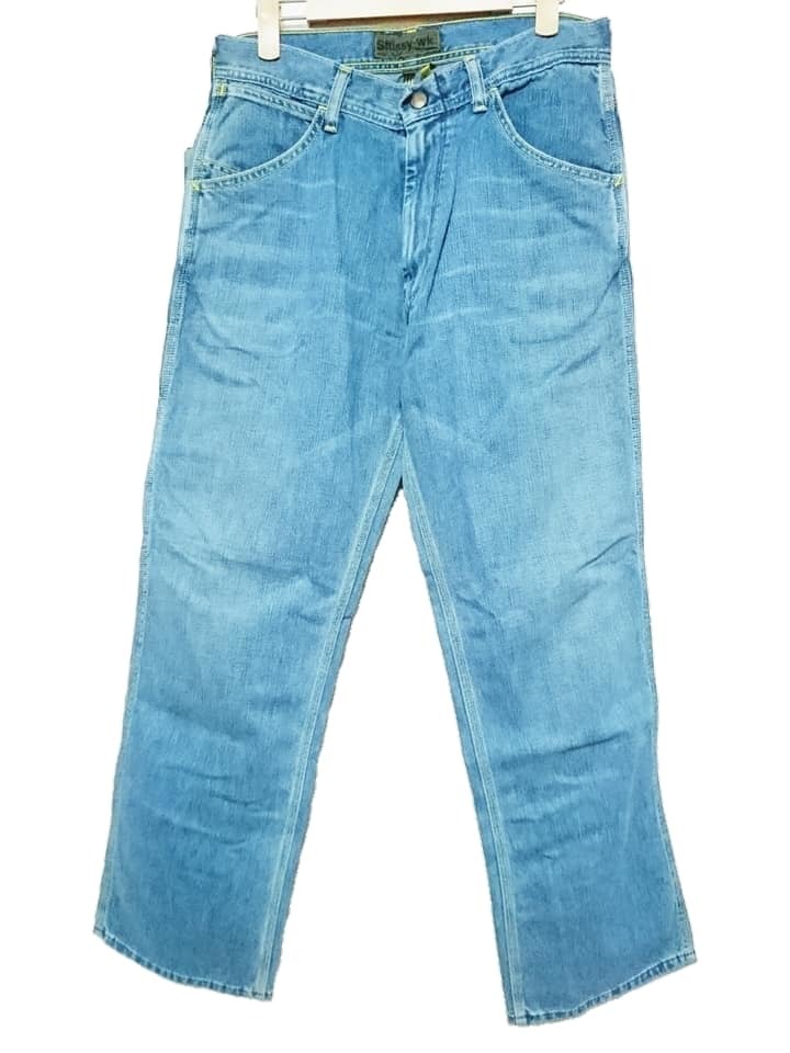 大人気米国ブランド『STUSSY ステューシー』のヴィンテージ加工ワークポケット付きワイドデニムパンツです。