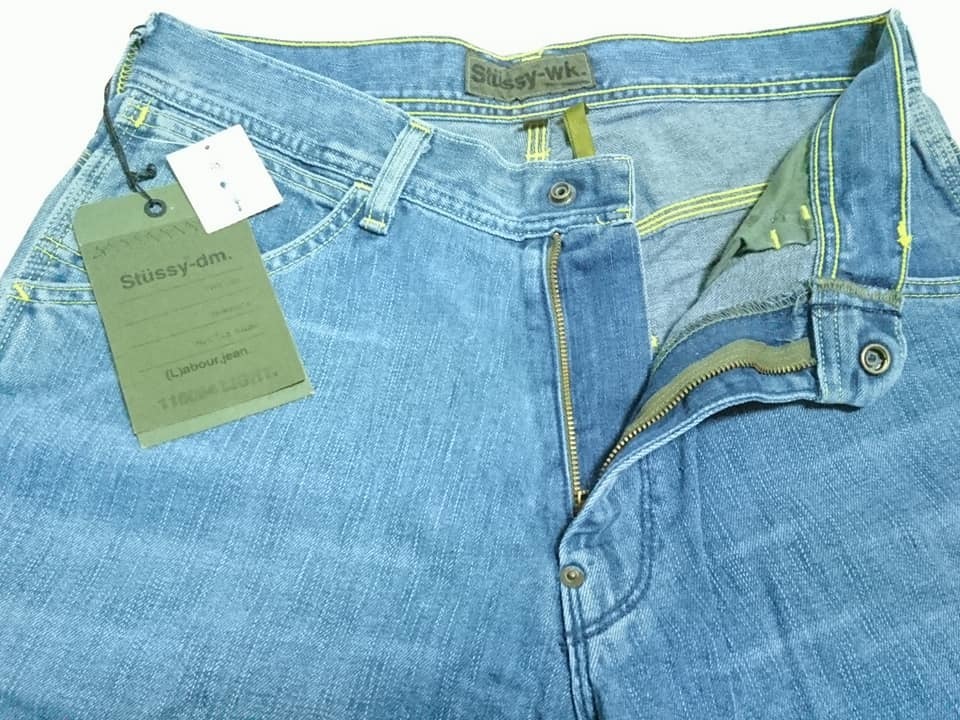 レア希少2000`s!¥17380!新品タグ付き!STUSSY ステューシー/ヴィンテージ加工ワークポケット付きワイドデニムパンツ 30 ブルー