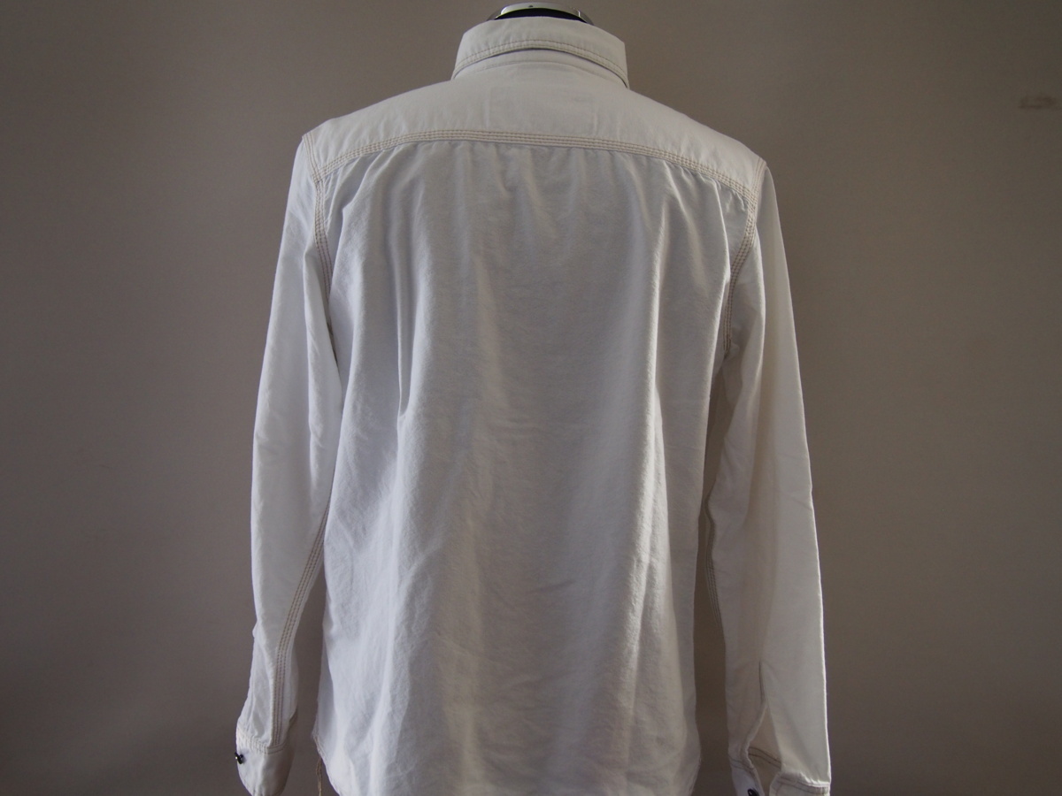 ハリスツイードのボタンダウン長袖シャツです。 左袖のカフスに近い袖の数箇所や襟周り等の一部分にベージュ系色のシミが見られます。(画像参照下さい。) 左胸にハリスツイード生地の切替ポケット配置、部分ステッチ使いや裾口一部分にフリンジ加工を施す等、細かなディテールにもこだわったデザインです。 サイズ表記はLサイズです。 平置き採寸肩幅約44.5cm、身幅(脇下)約50cm、袖丈約61cm、着丈約67cm。 素人採寸ですので多少の誤差はご了承ください。 カラーはホワイトを基調。 微妙なお色、デザインですので写真をよく参照してください。 素材は確認できません。 中古品ですので細かい汚れや傷など気にされる神経質なかたの入札はご遠慮ください。 ノークレーム、ノーリターンでお願いします。 レディース・メンズ又はユニセックス等の区別に関してランドリータグ等に記載がない場合、弊社の判断でカテゴリー化しています。 尚メンズ・レディースの判断は弊社では出来かねますので、サイズに関しましてはメーカーサイズの他に商品を実際に測った平置き採寸を必ずご確認ください。(各メーカーによりサイズの採寸が異なります。) |