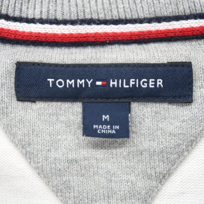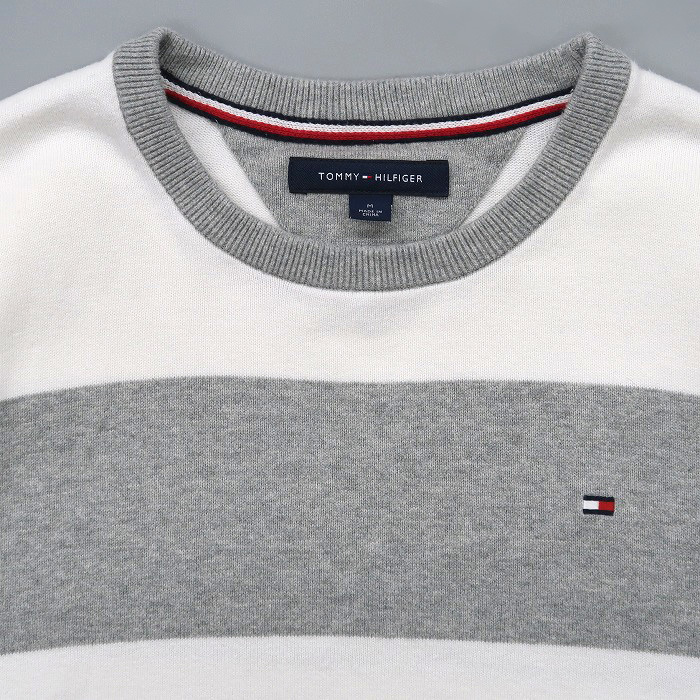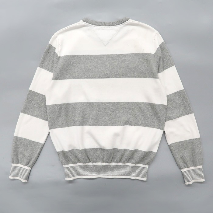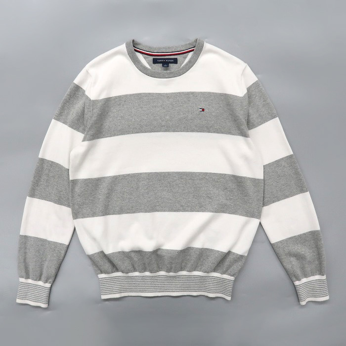 古着 TOMMY トミーヒルフィガー コットンニット セーター ボーダー ホワイト グレー サイズ表記:M gd66242
