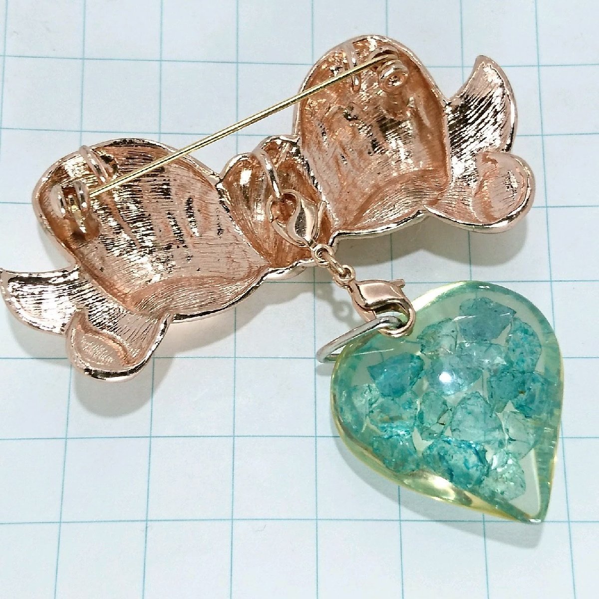 送料無料)ビンテージ☆MAGNOLIA ピンクリボン ハート☆アンティーク ブローチ A20475