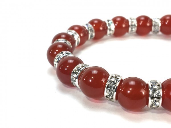 こちらは、10mm玉の赤瑪瑙を使用したパワーストーンブレスレットです。間にはロンデルを挟み高級感あるブレスレットに仕上げています。石大きさは腕にも馴染みやすいように10mm玉を使用して、サイズは内径約18cmです。(サイズ調節も無料で承っています。サイズ変更の場合は落札後、取引ナビにてご一報くださいませ。) 数に限りがございますので気になる方はお早めにどうぞ。