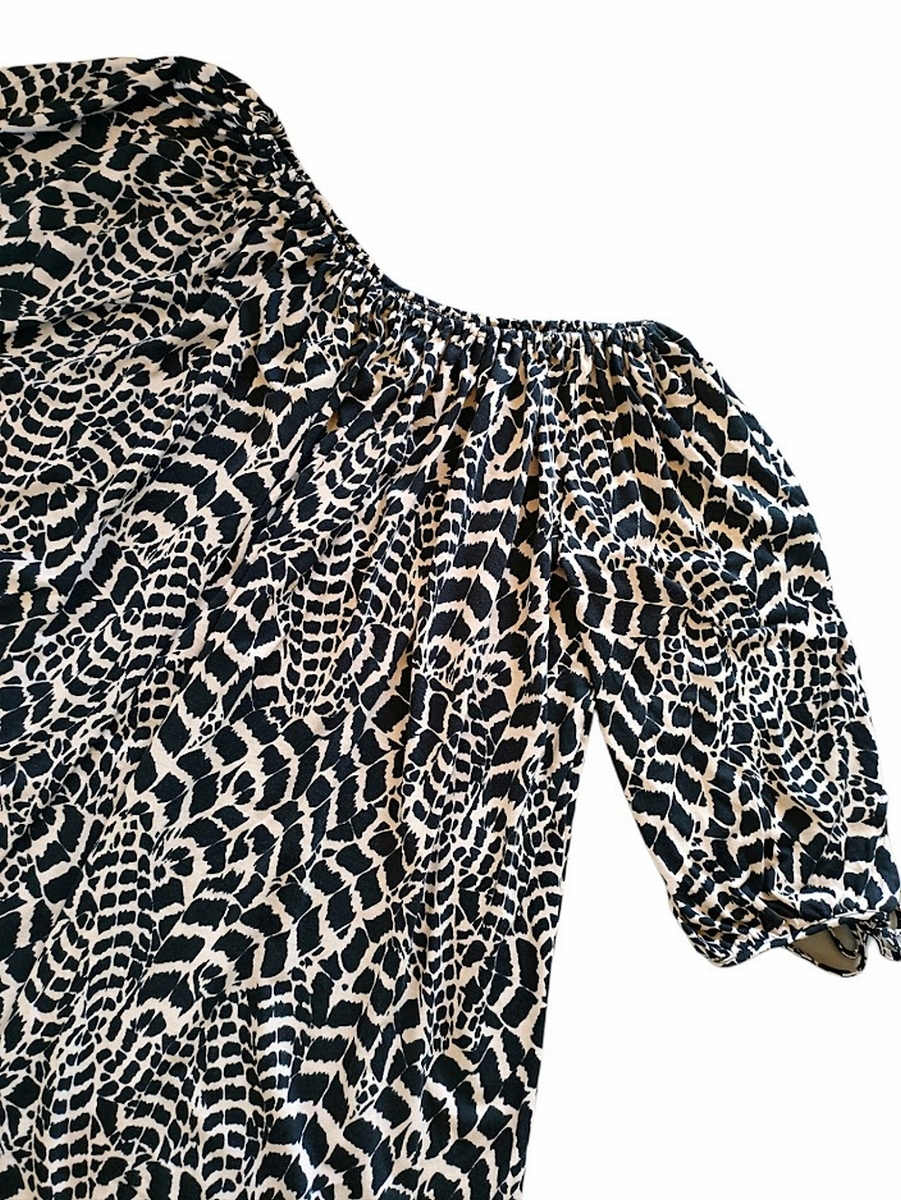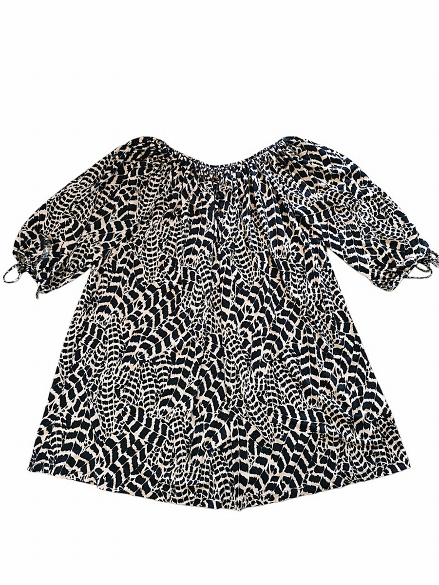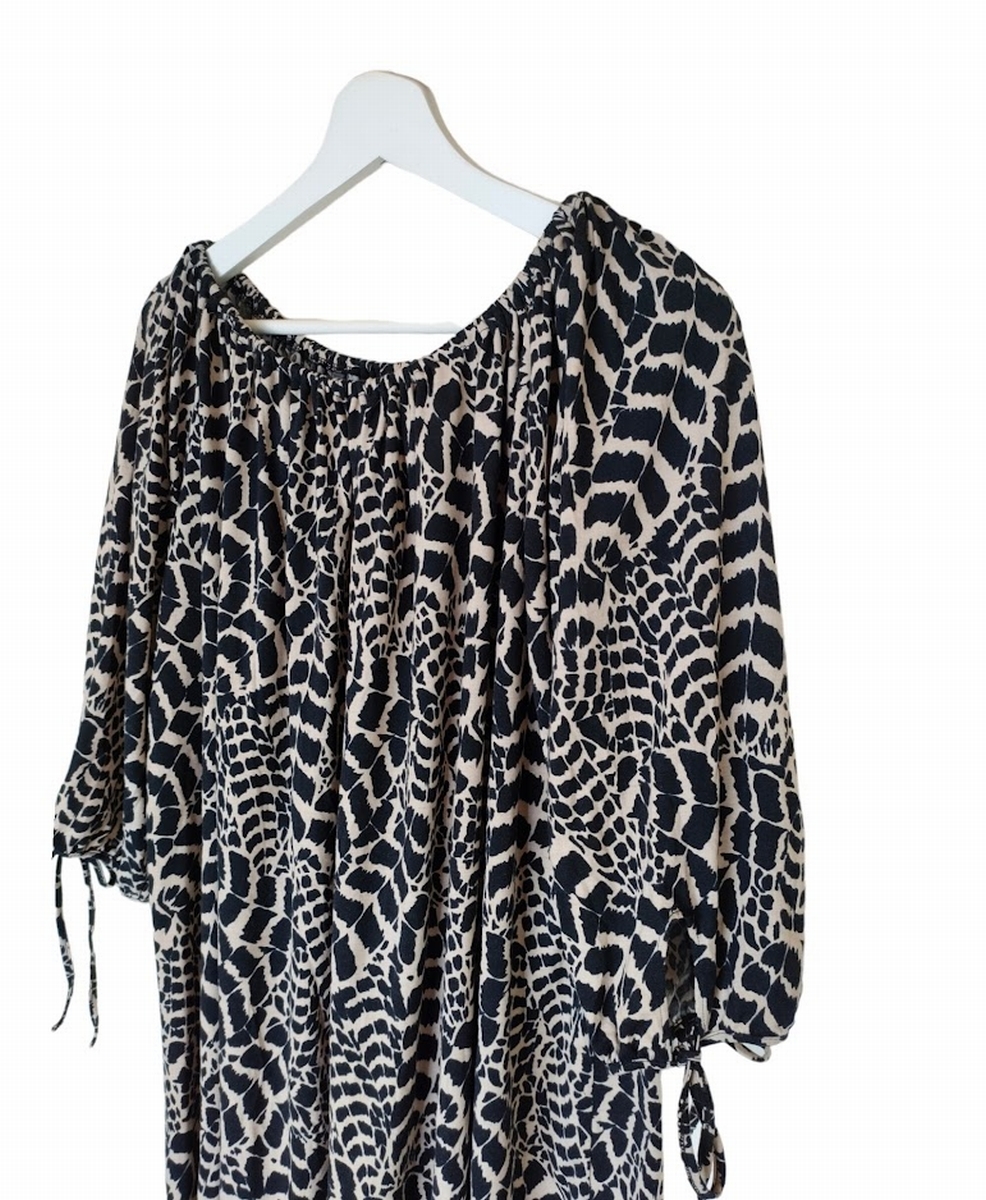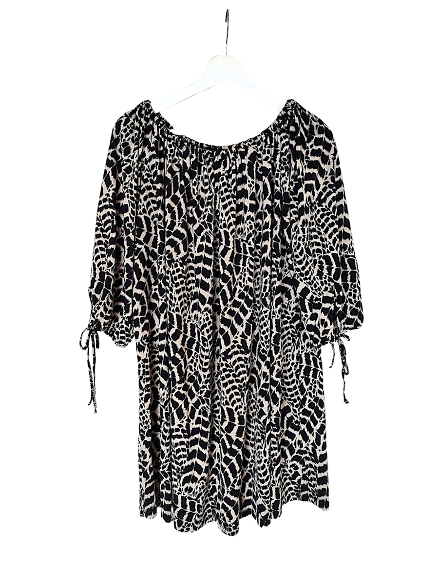●Raybeamsレイビームス/アニマルプリントチュニック/ベージュ×ブラック/七分袖/オーバーサイズ●