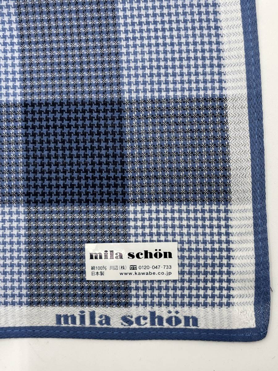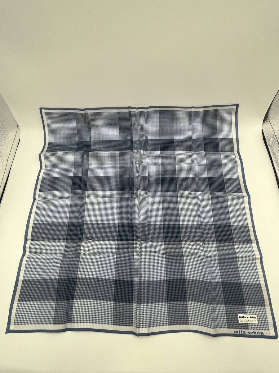 【未使用品】mila schon ミラショーン ハンカチ バンダナ ブルー系 チェック柄 綿 コットン100% W48 H48