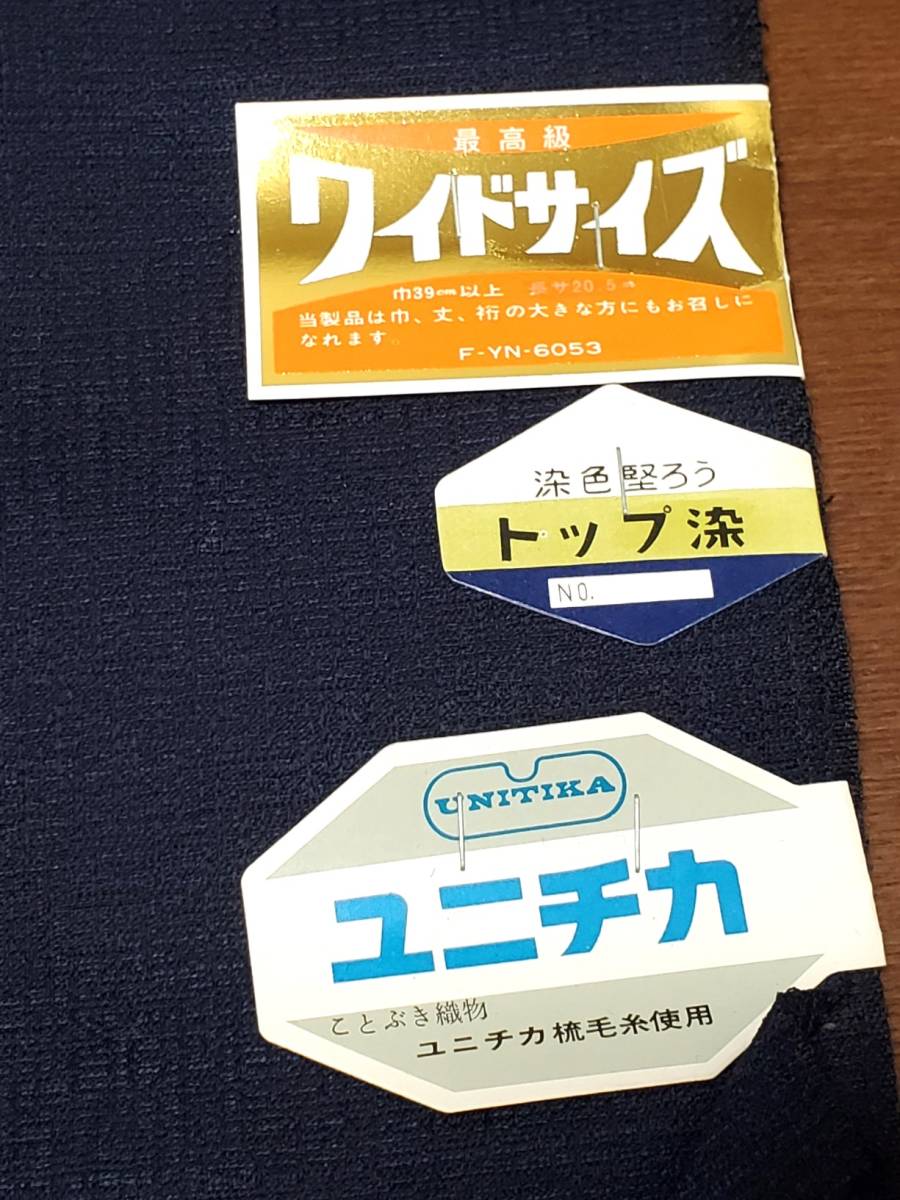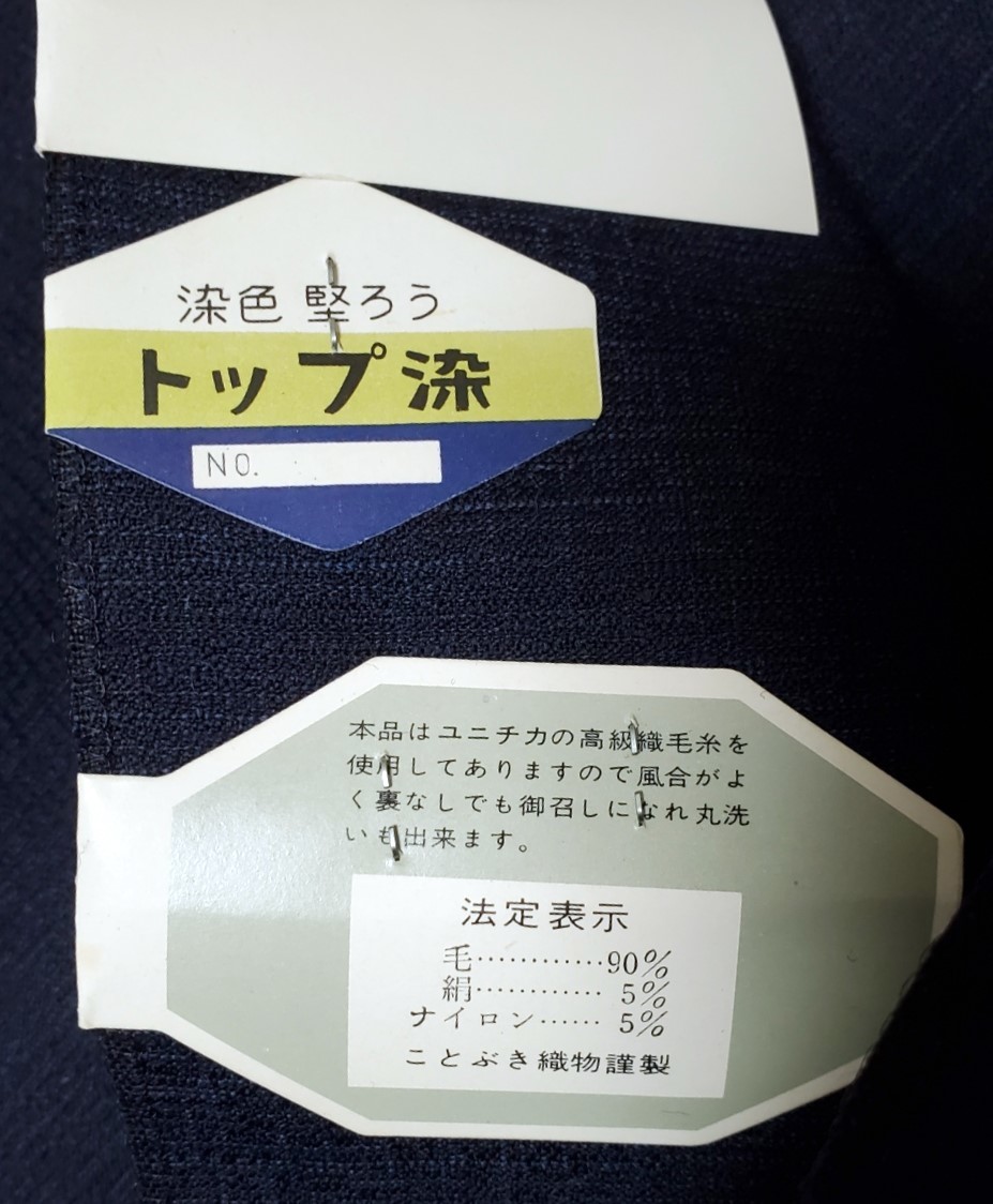 一宝織 反物 ユニチカ ワイドサイズ 着物&羽織 紺色 毛90% メンズ 未使用・未仕立て・保管品