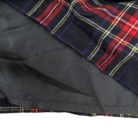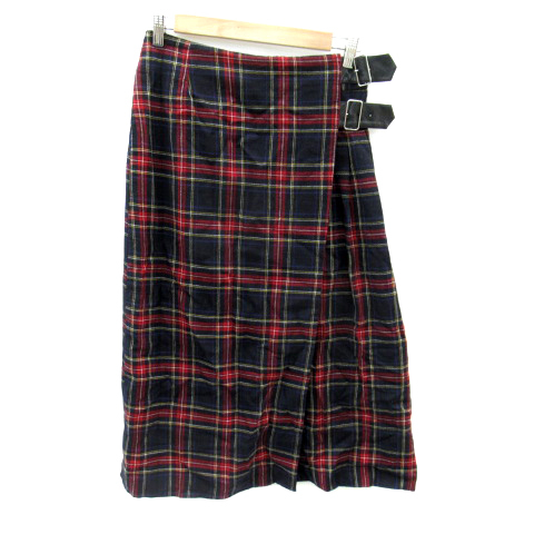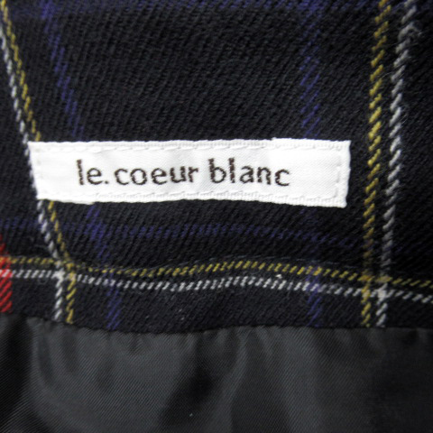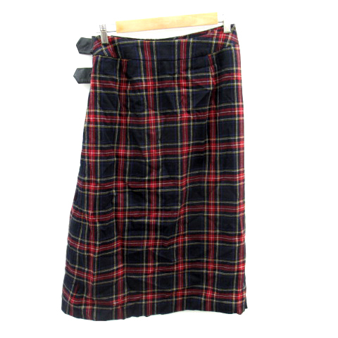 ルクールブラン le.coeur blanc フレアスカート ロング丈 チェック柄 マルチカラー ウール 38 赤 レッド 紺 ネイビー /SY8 レディース